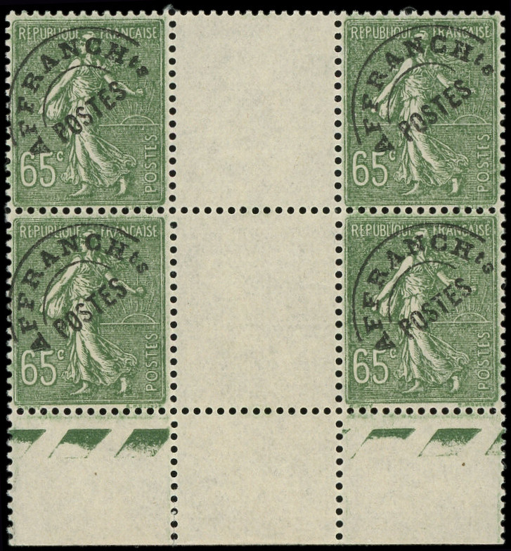 Lignée, 65c. olive, BLOC de 4 interp. bdf, bon centrage, TB (Image)