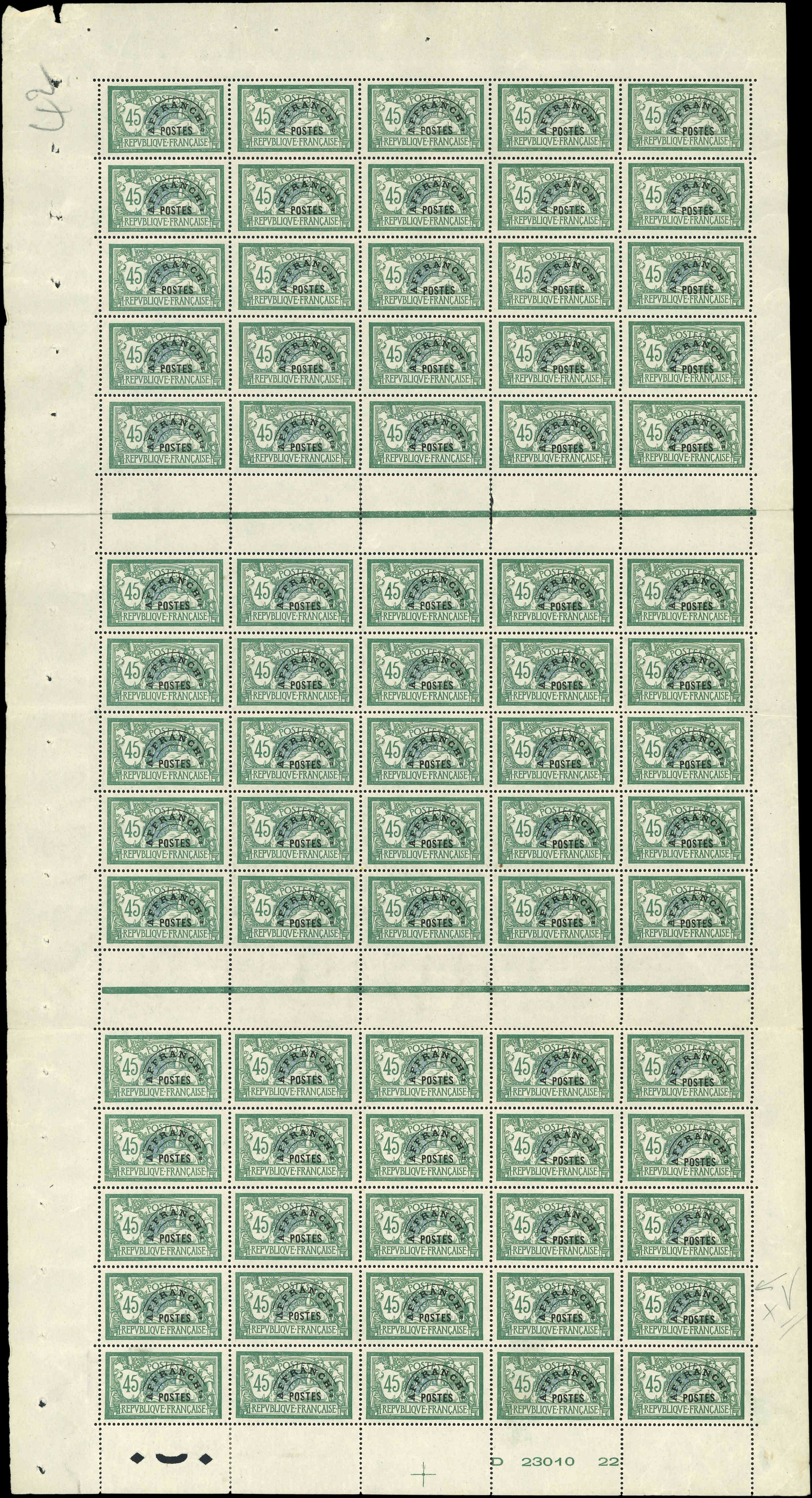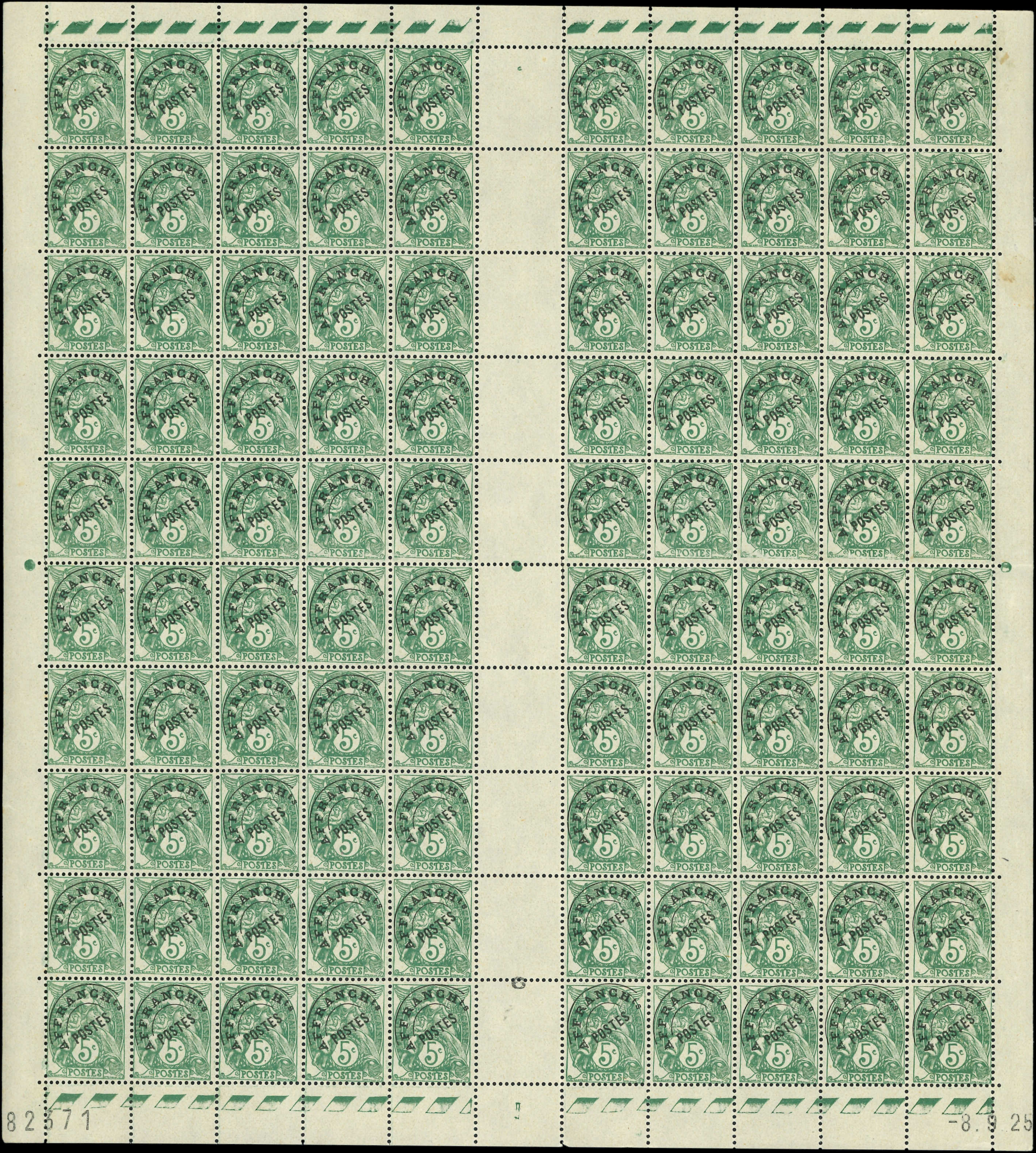 vert, T IIA, surcharge fine, FEUILLE de 100, CD 8/9/25, TB (Image)