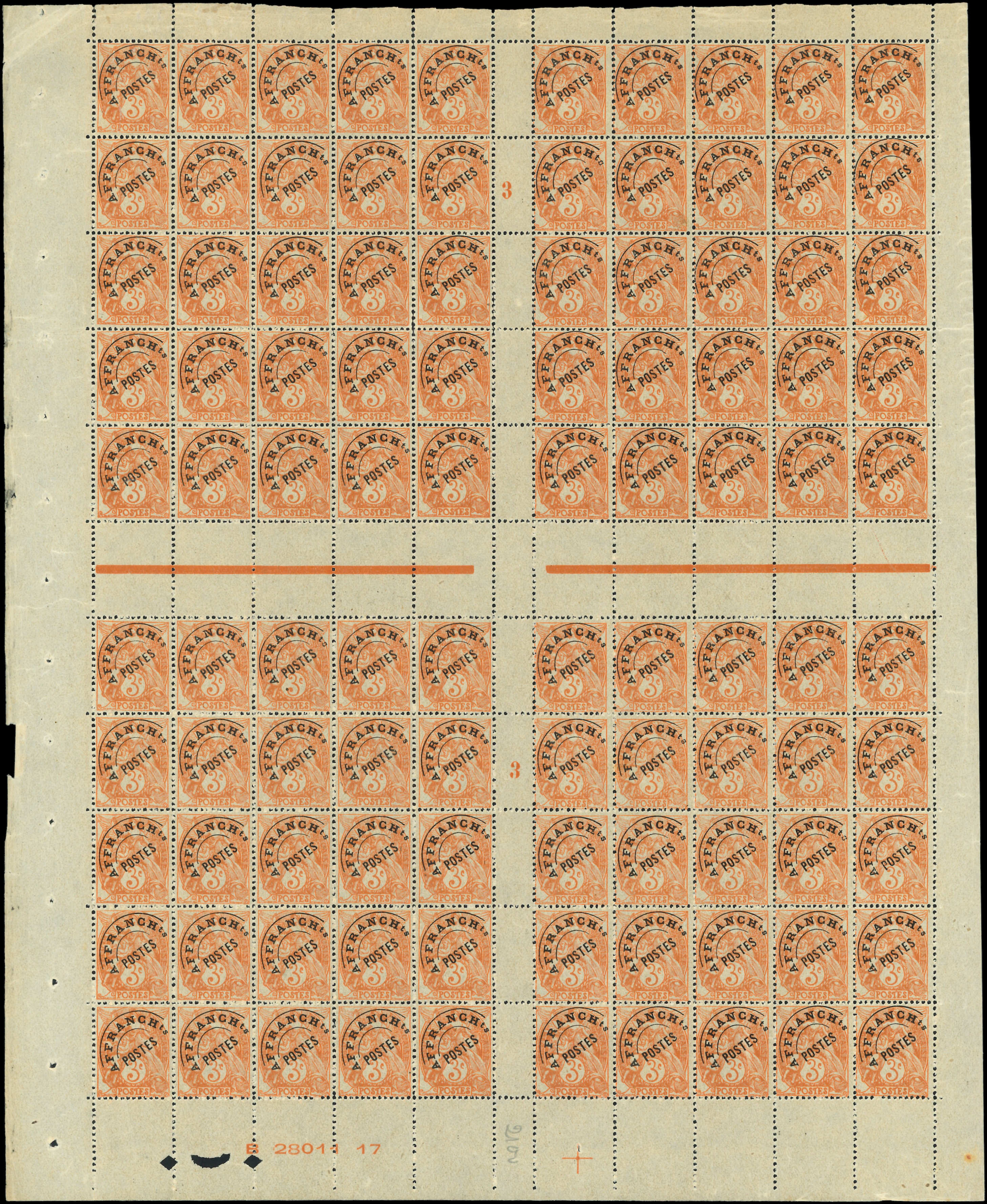 orange, FEUILLE de 100, bas de feuille B 28011 17, TB (Image)