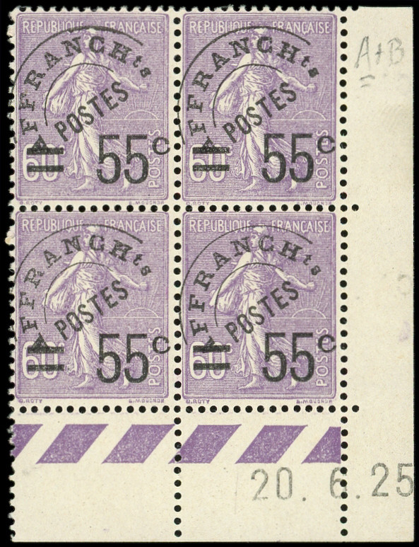 Lignée, 55c. s. 60c. violet, BLOC de 4 CD 20/6/25, ch. s. le bord, TB (Image)