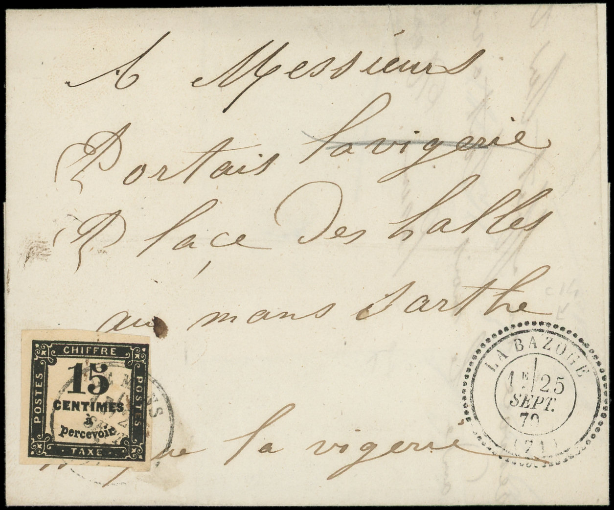 Typo T I, obl. càd T16 LE MANS 26/9/70 bureau de recette s. LAC, càd T24 LA BAZOGE bureau de distribution 25/9, TTB (Image)