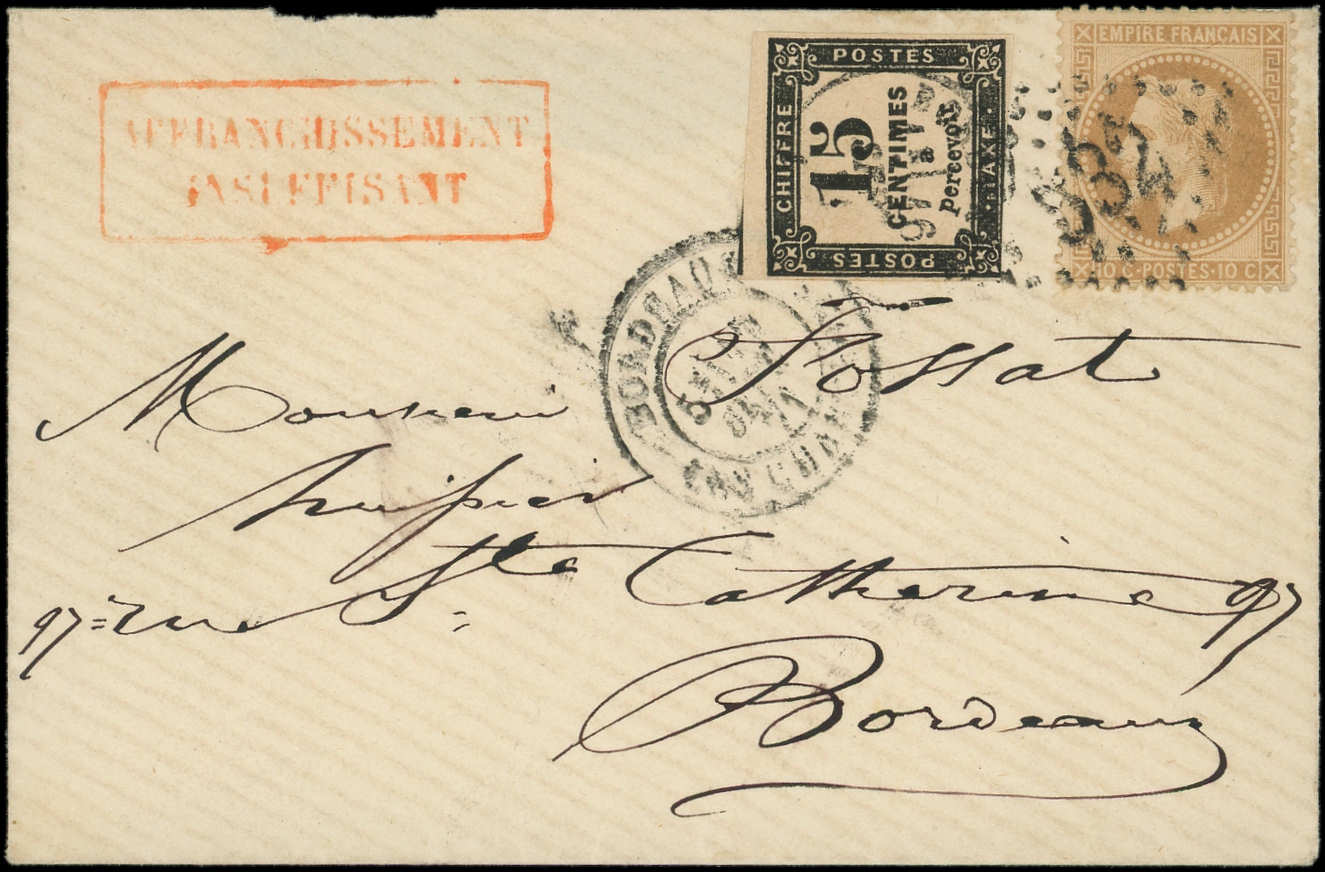 Typo, T I, obl. càd BORDEAUX 26/9/71 s. LAC avec cachet PROVISOIRE de surtaxe 10 en ROUGE, RR, TB (Image)