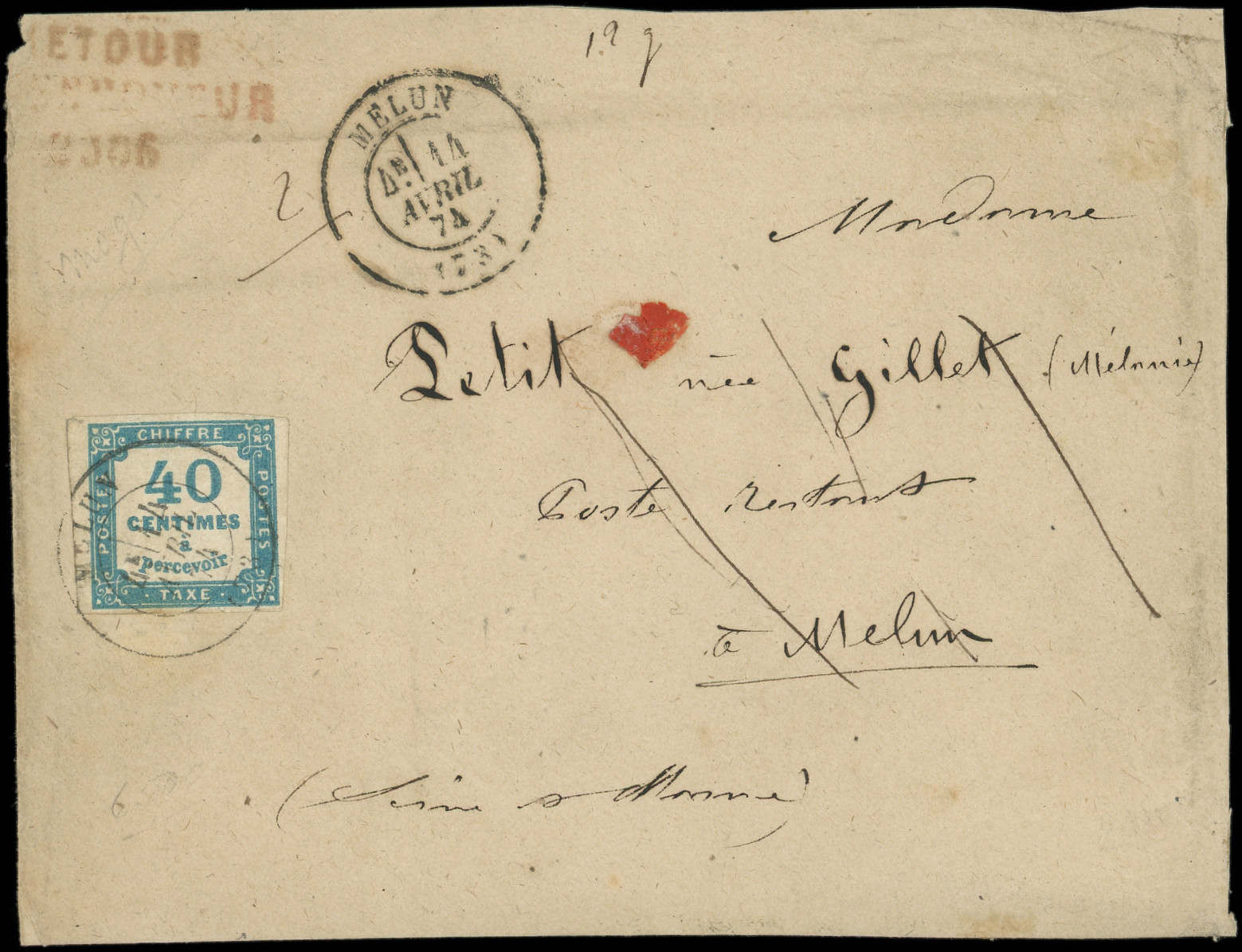 obl. càd T17 MELUN 14/4/74 répété à côté s. Env., DOUBLE port local et RETOUR A L'ENVOYEUR, TB (Image) (Image2)