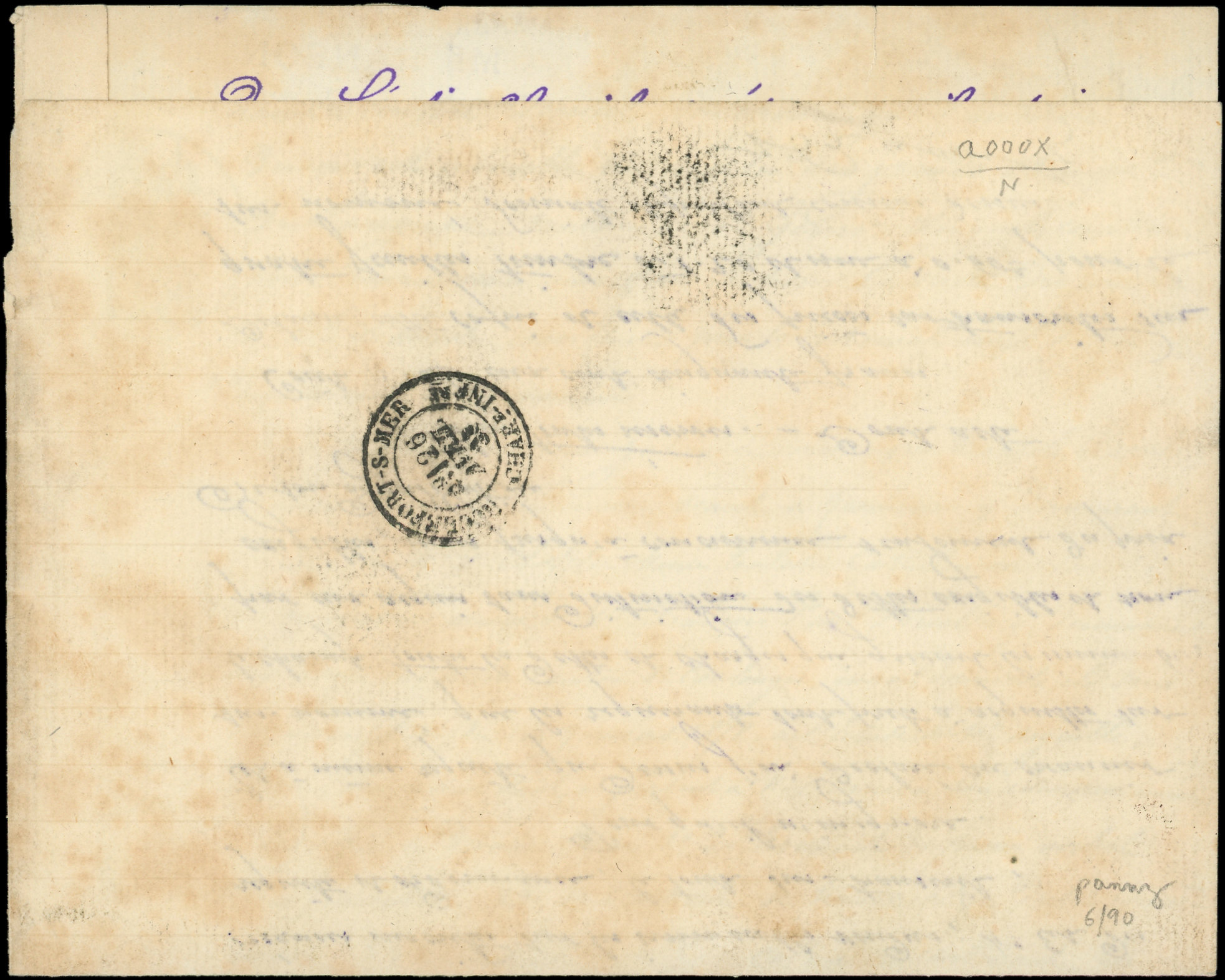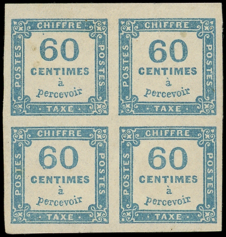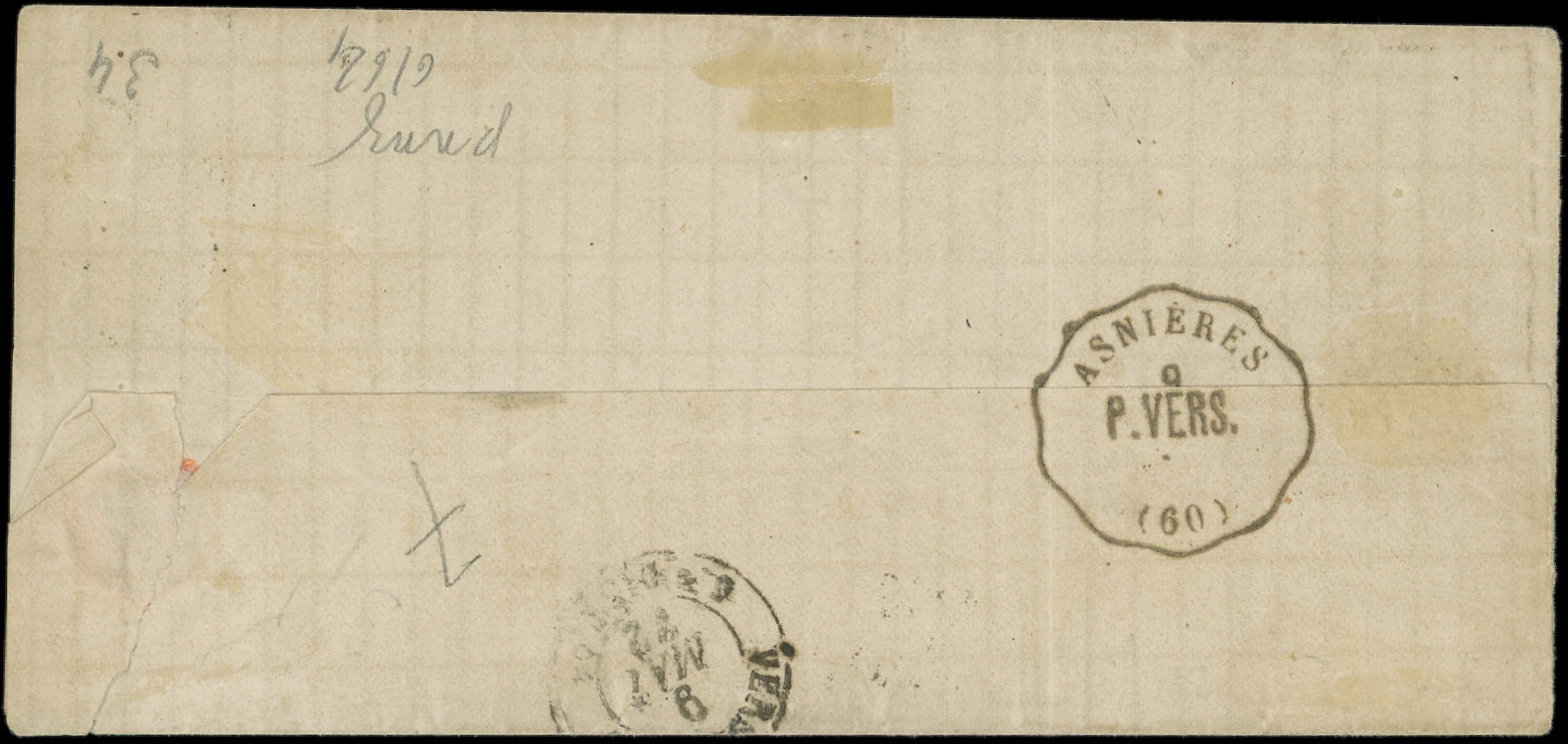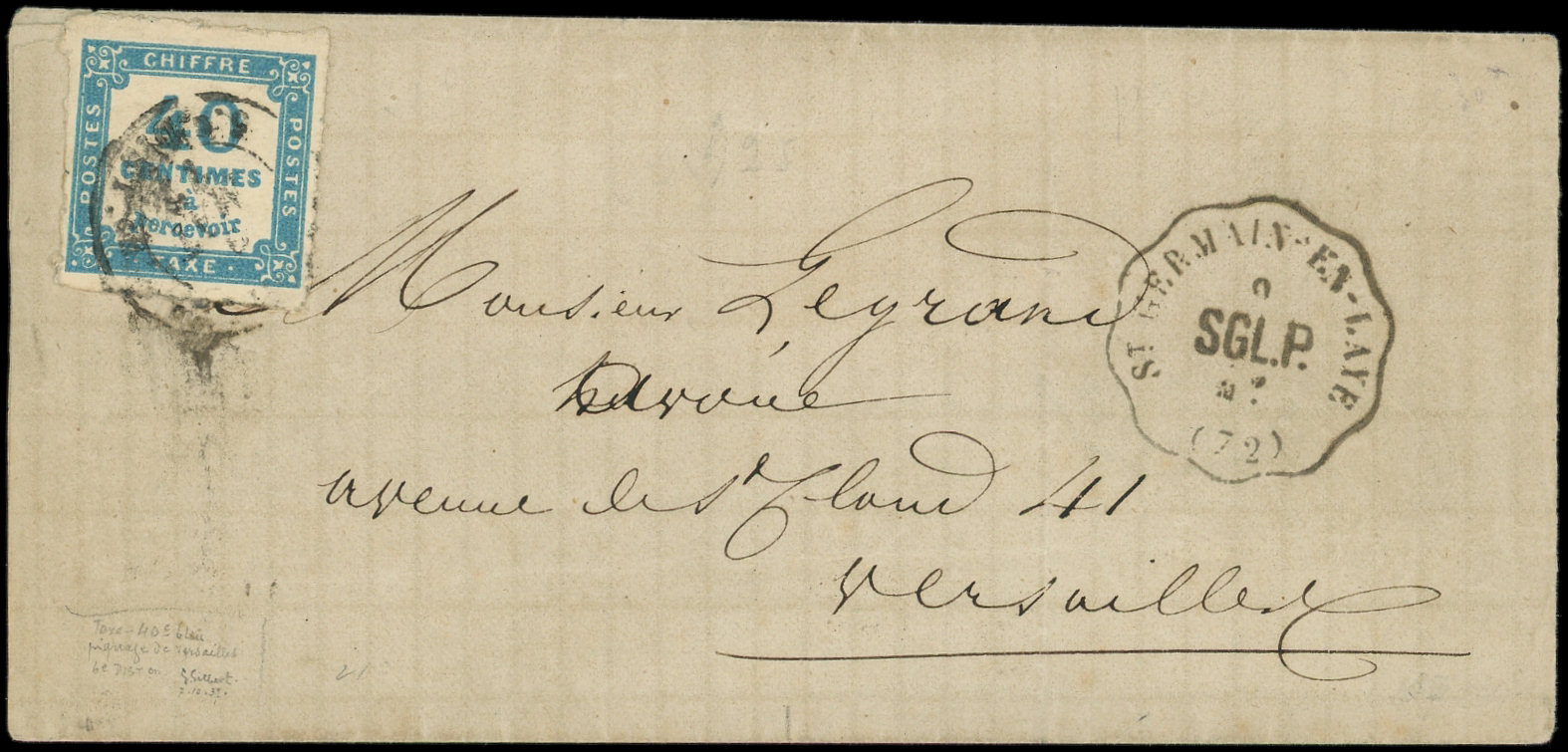 bleu, 5c. et 1f. noir en PAIRES, taxation à 2f70 s. envoi de docs par un huissier de MARENNES (poids 105 à 135 g.), taxation à COULONGES Deux Sèvres, RR, TB. C (Image)