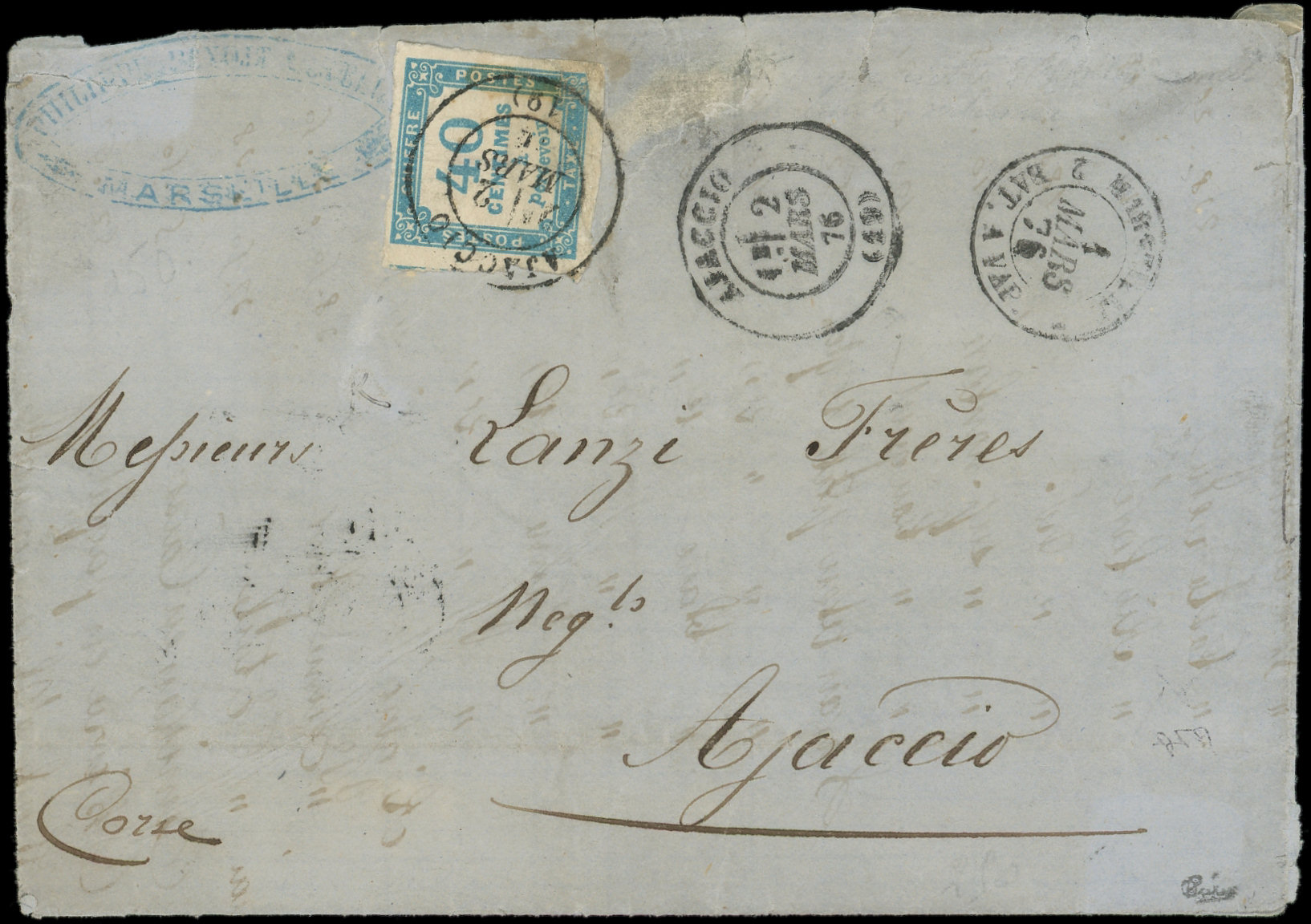 obl. càd T17 AJACCIO 2/3/76 s. LAC non affr. de Marseille, càd MARSEILLE BAT A VAP 1/3, RR, TB, (Image) (Image2)