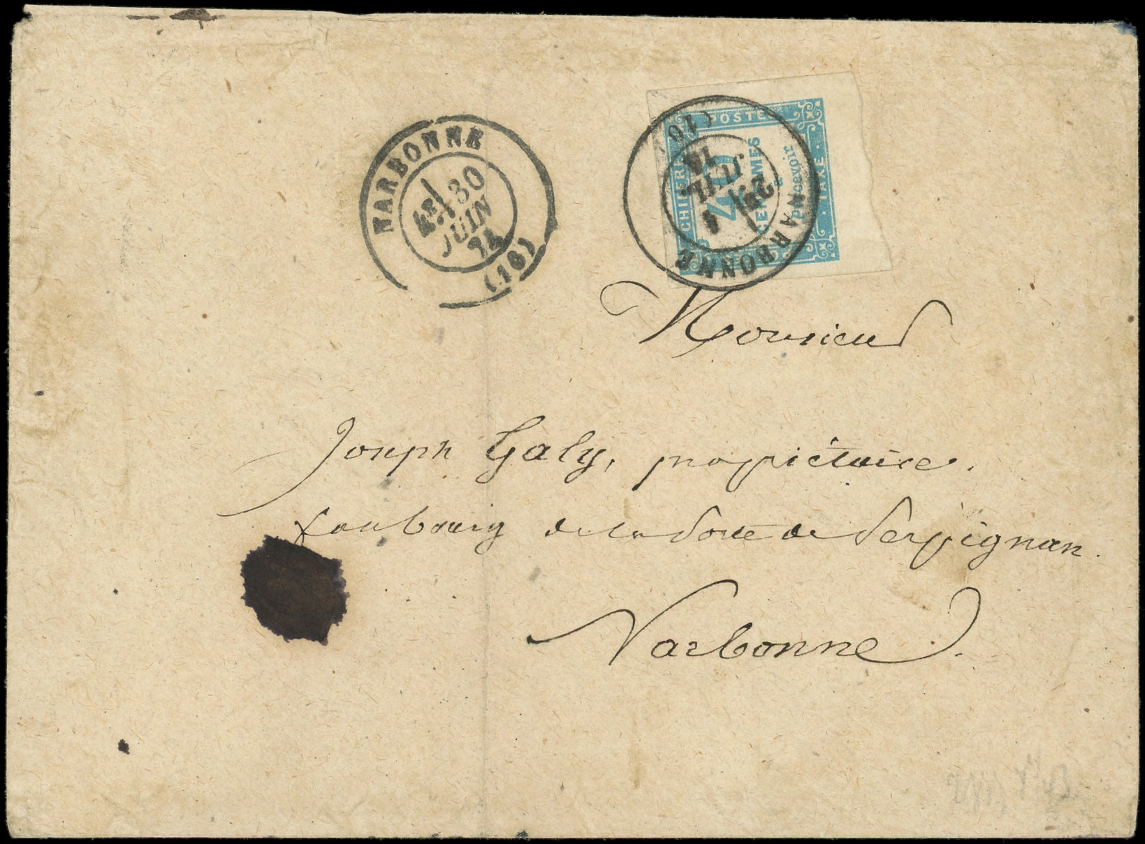 COIN de FEUILLE, marges énormes, obl. càd T17 NARBONNE 30/6/74 s. Env., exceptionnel dans cette qualité (Image)