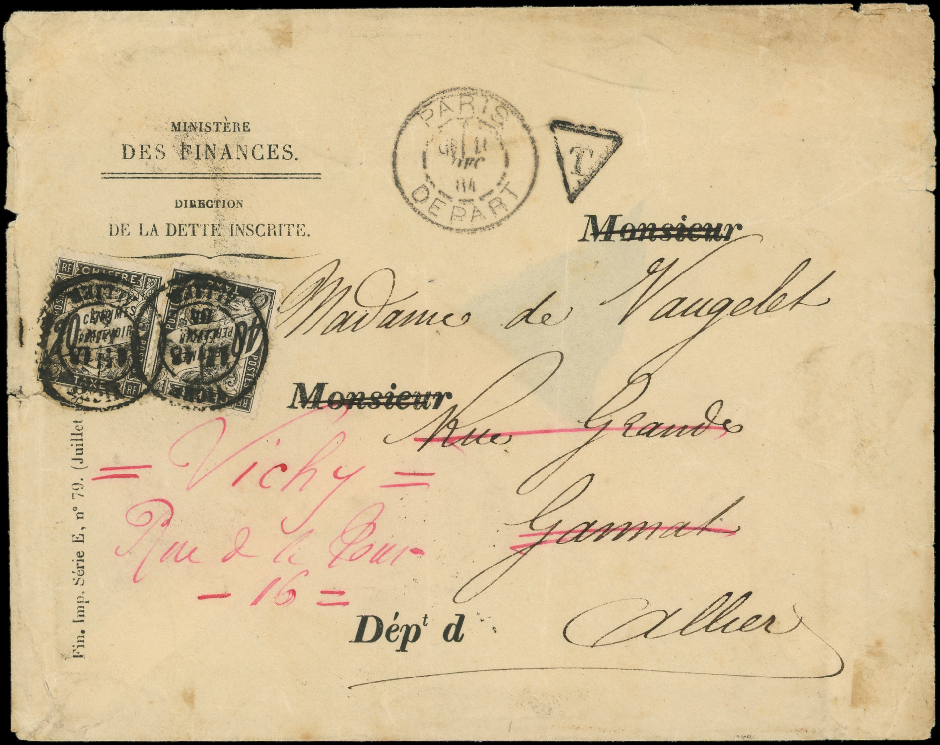 40c. obl. càd VICHY 12/84 s. Env. 2 ports càd PARIS DEPART, TB (Image)