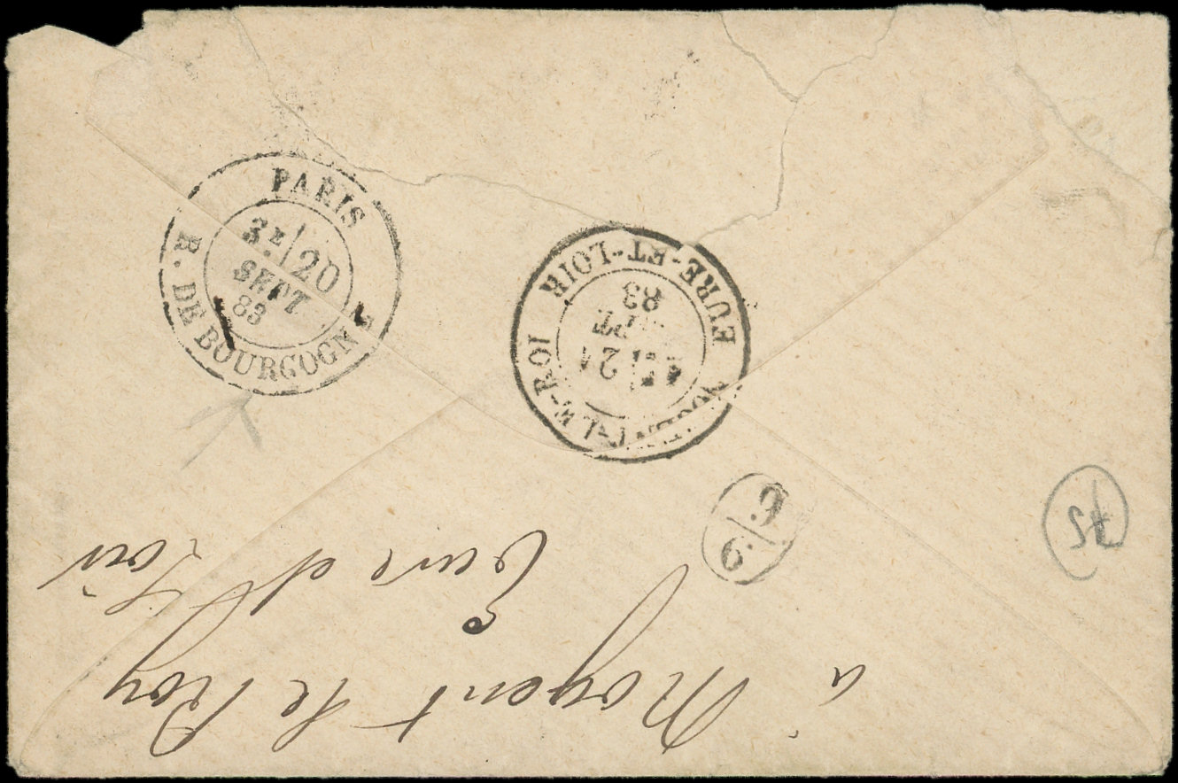 obl. cachet de facteur 9/6 et plume s. Env., càd Bd St Germain 19/9/83, arr. NOGENT-LE-ROI avec N°18 obl. 21/9, TB. C (Image) (Image2)