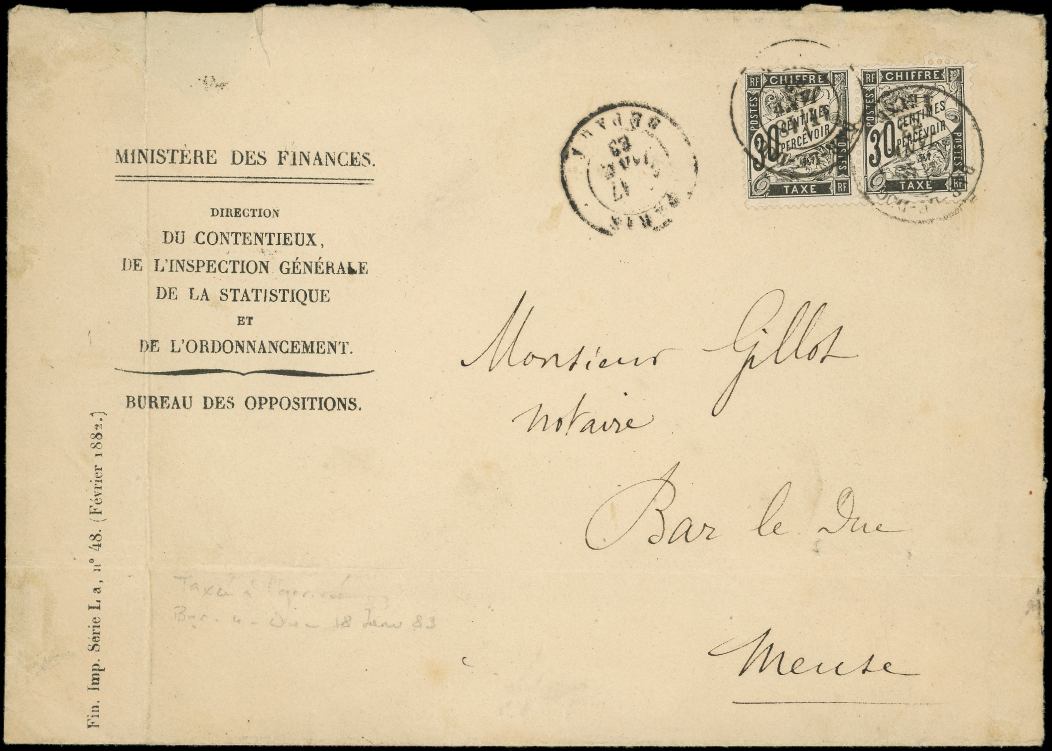 PAIRE obl. càd BAR-LE-DUC 17/1/83 s. Env. Ministère des Finances, TB (Image)