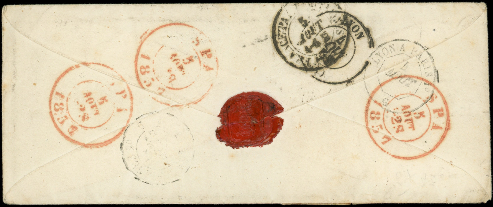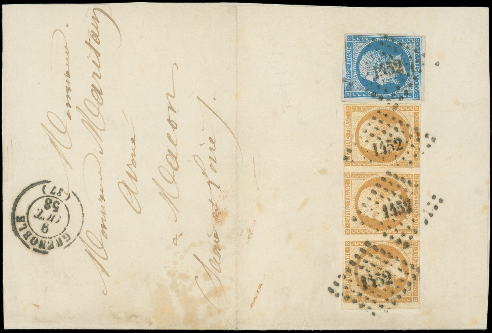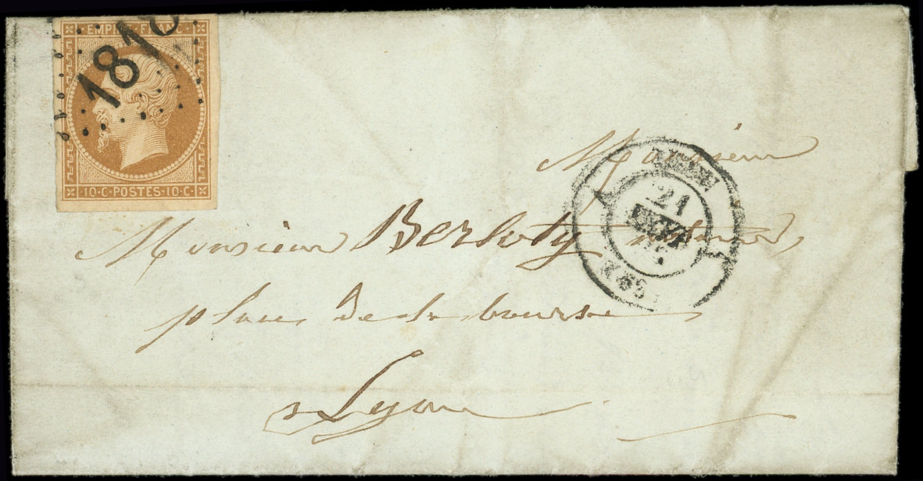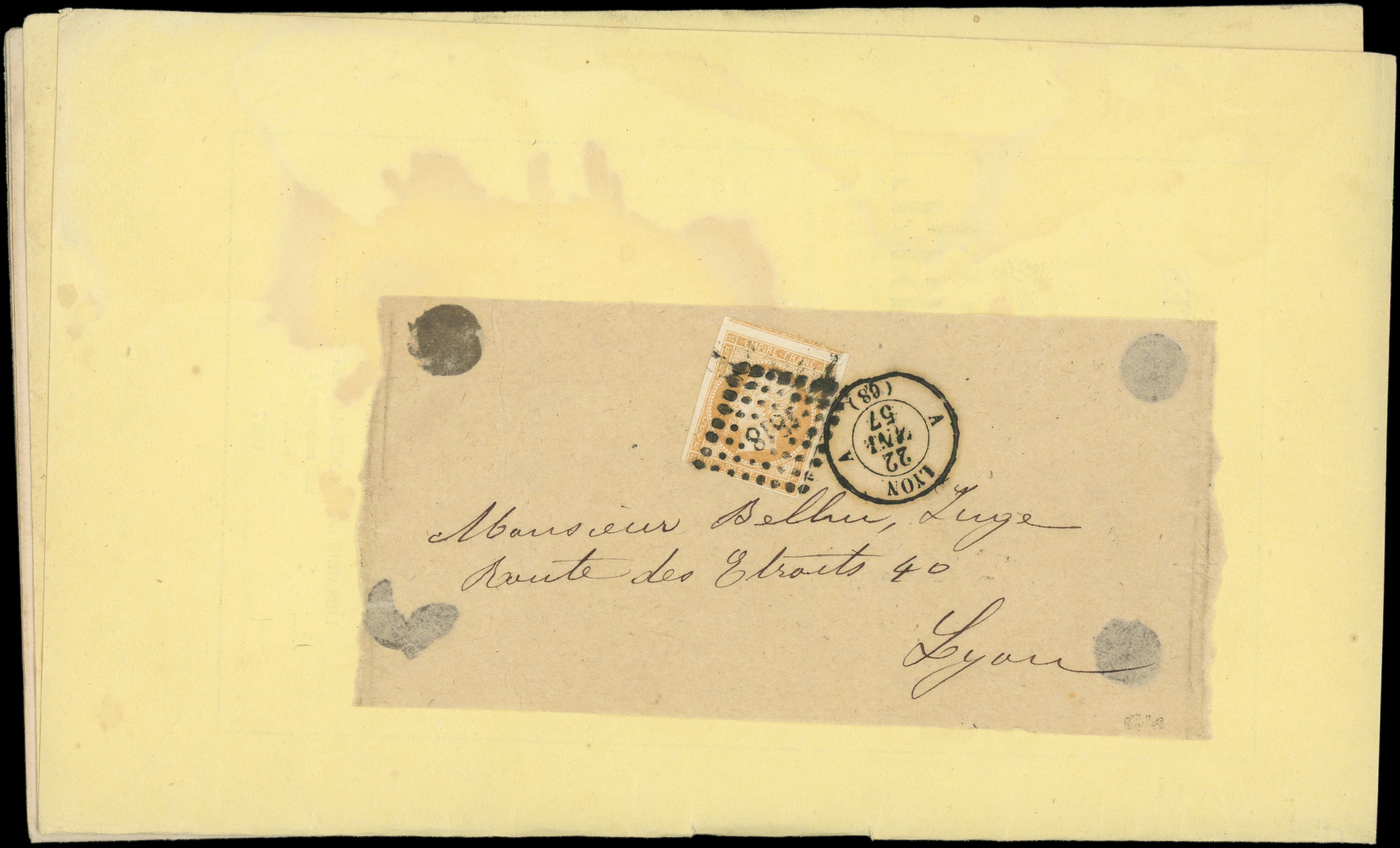 clair, T II, obl. GC d'ESSAI 1818 caractères GRAS s. LAC, càd LYON 21/2/62, oblitération RR sur le 10c. pour une lettre locale, TTB (Image)