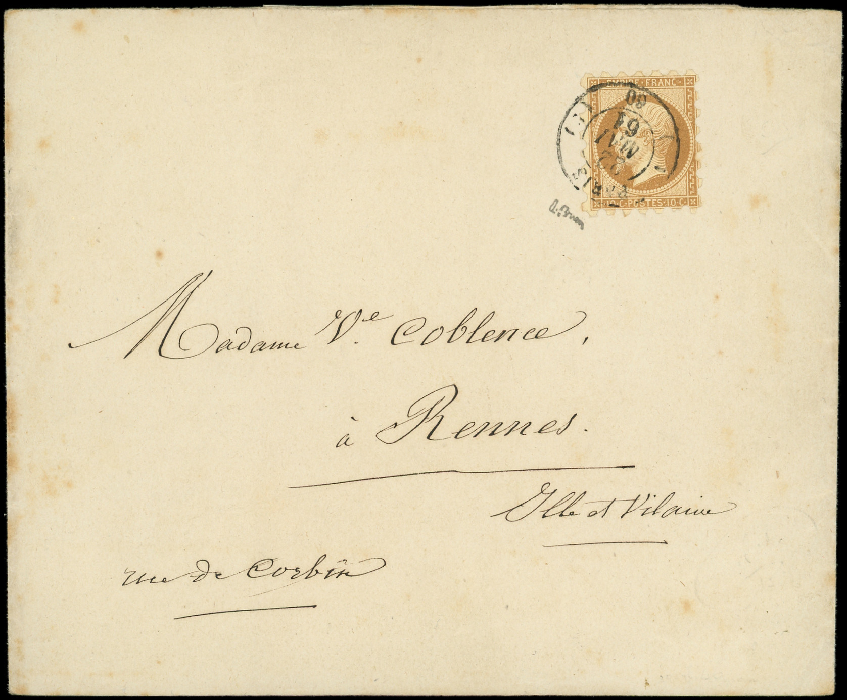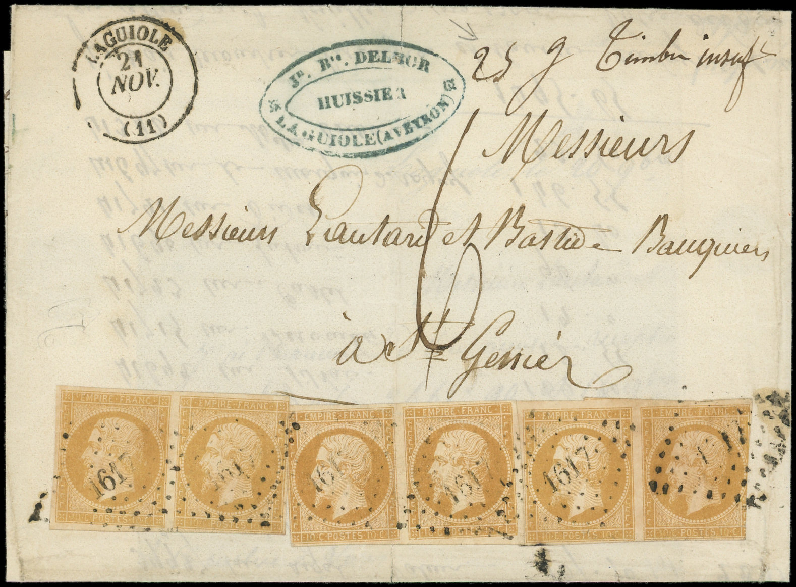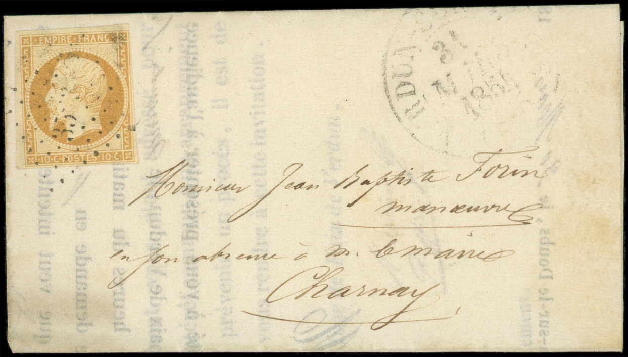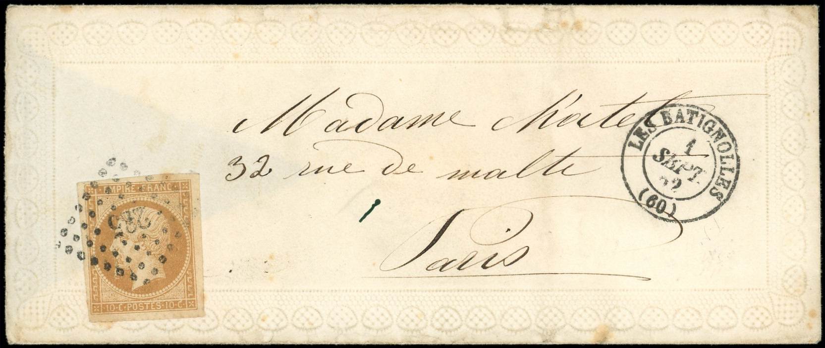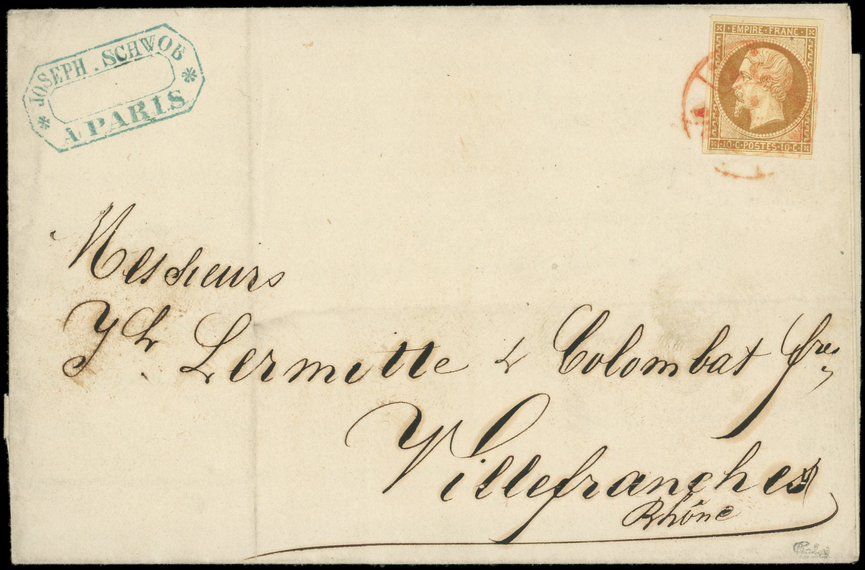 clair, T II, obl. GC d'ESSAI 1818 caractères GRAS s. LAC, càd LYON 21/2/62, oblitération RR sur le 10c. pour une lettre locale, TTB (Image)