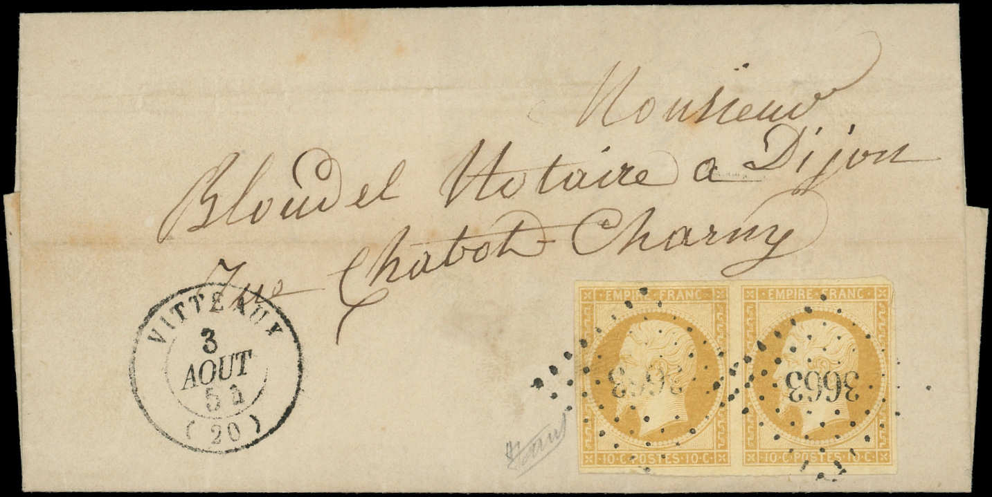 citron, T I, PAIRE obl. PC 3663 s. LAC, càd T15 VITTEAUX 3/8/54, TTB (Image)