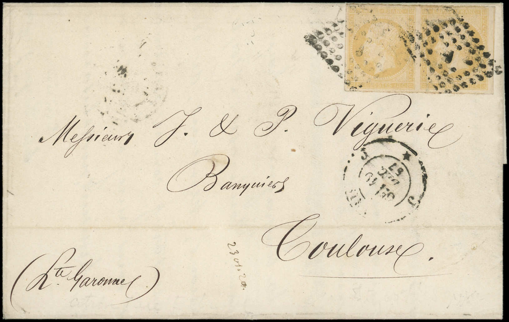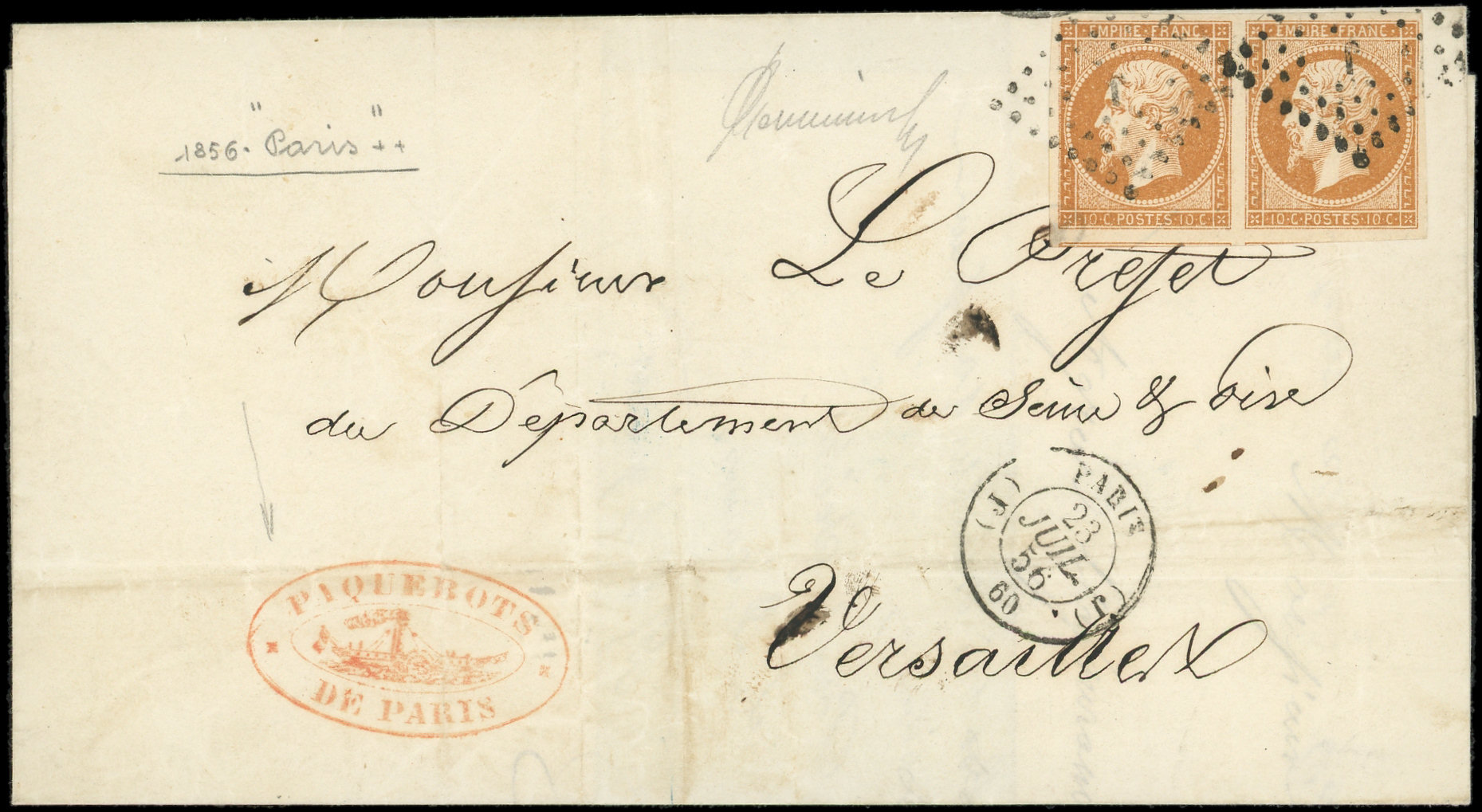 bistre-orange nuance foncée, T I, PAIRE obl. Los. J s. LSC, càd (J) PARIS (J) et Rarissime cachet "PAQUEBOTS de PARIS", TTB (Image)