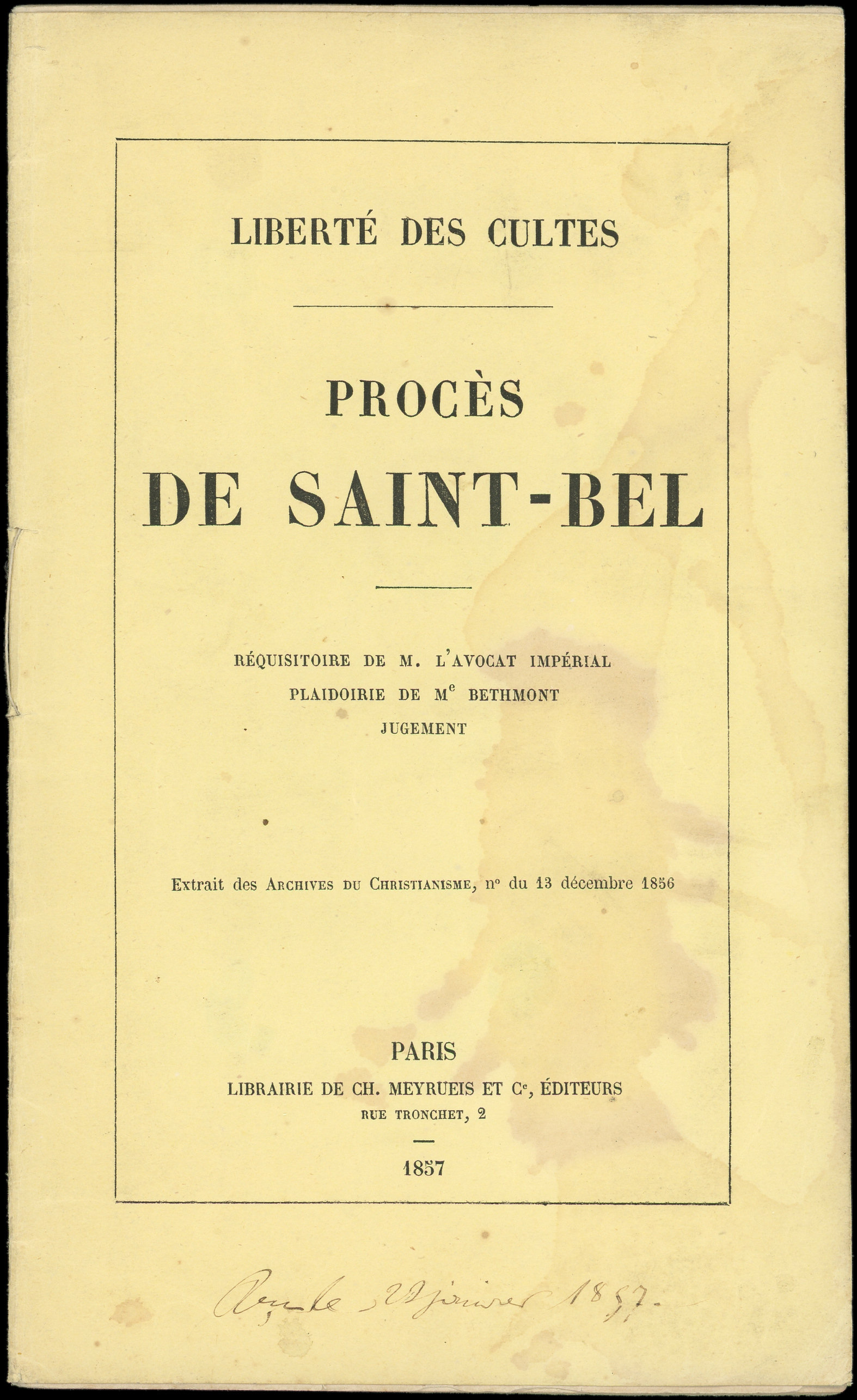 jaune-citron, obl. PC 1818 s. Imprimé local pesant entre 50 et 100g. Liberté des Cultes Procès de Saint Bel. Document complet et Superbe. C (Image) (Image2)