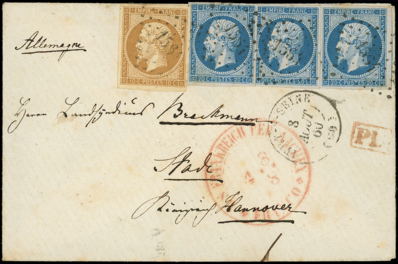 et 20c. (3) obl. PC 1561 s. Env., càd T15 ISSY-S-SEINE 8/8/60 pour HANNOVER 9/8, TB (Image)
