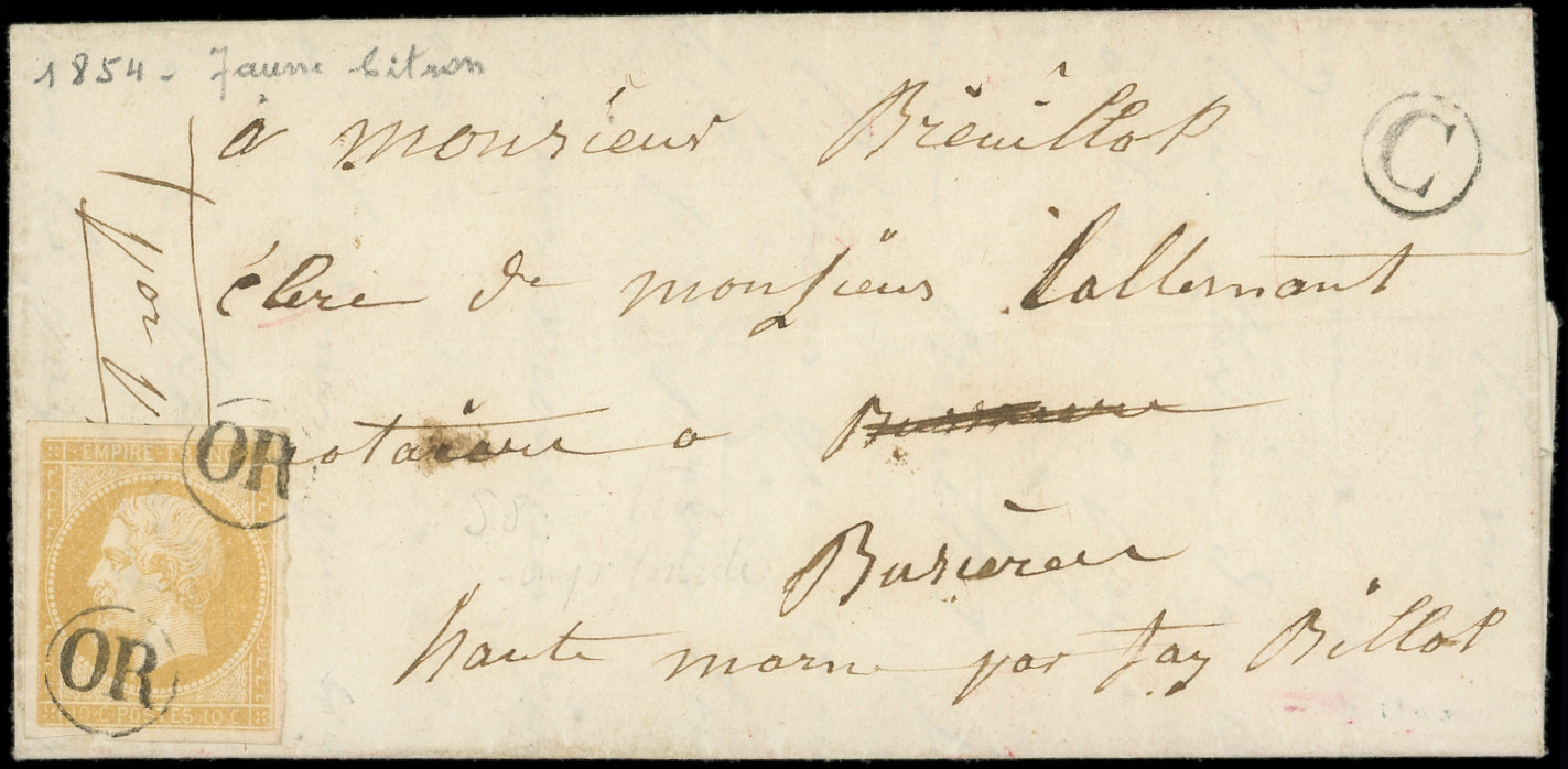 jaune-citron, T I, obl. PC 3523 s. Convocation, càd T13 (usé car mis en circulation en 1830) VERDUN-SUR-SAONE 31/3/54, bonne date avant 1/7/54, combinaison TB (Image)