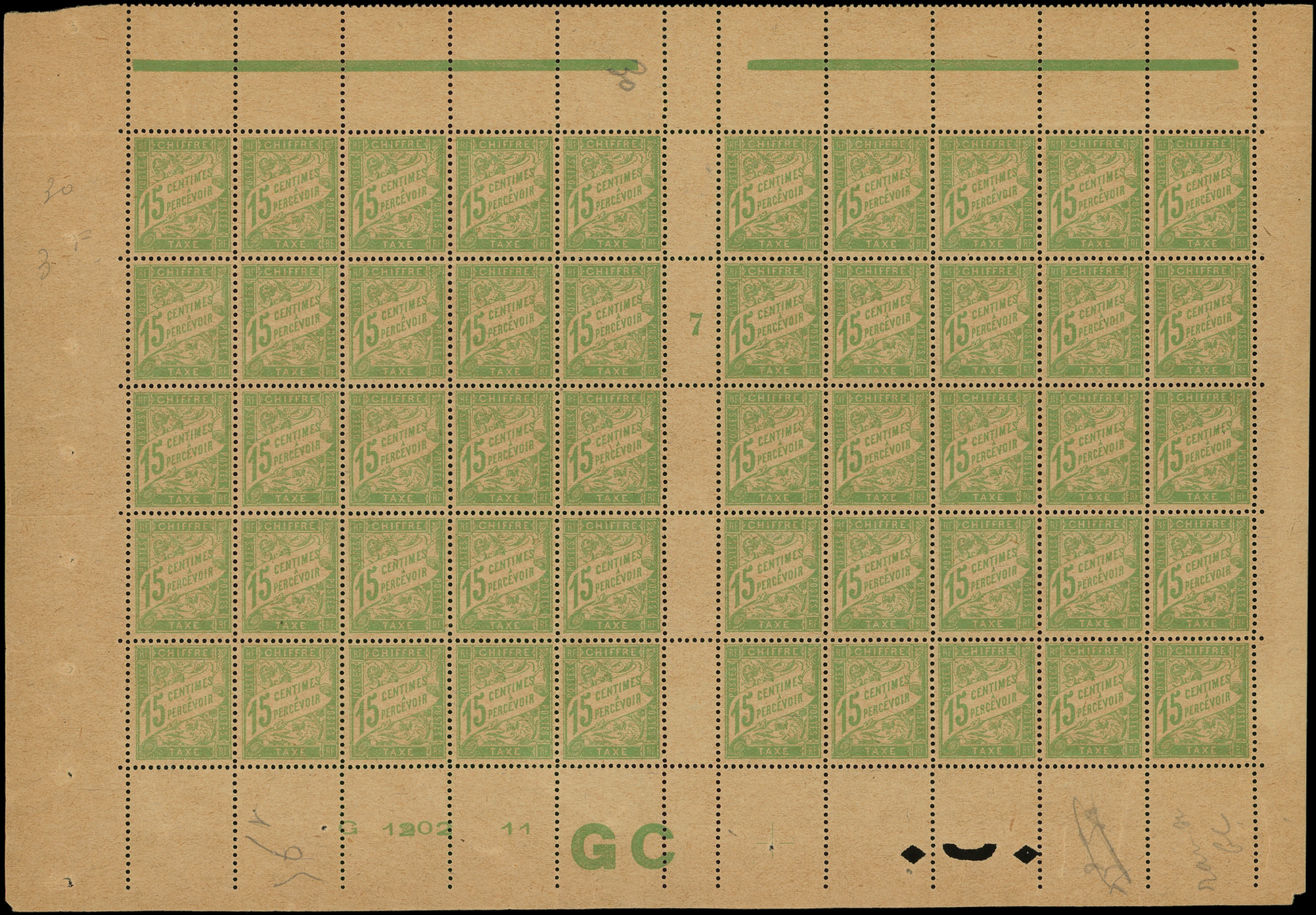 vert-jaune, papier GC, PANNEAU de 50 Mill.7, très bon centrage d'ensemble, TB (Image)