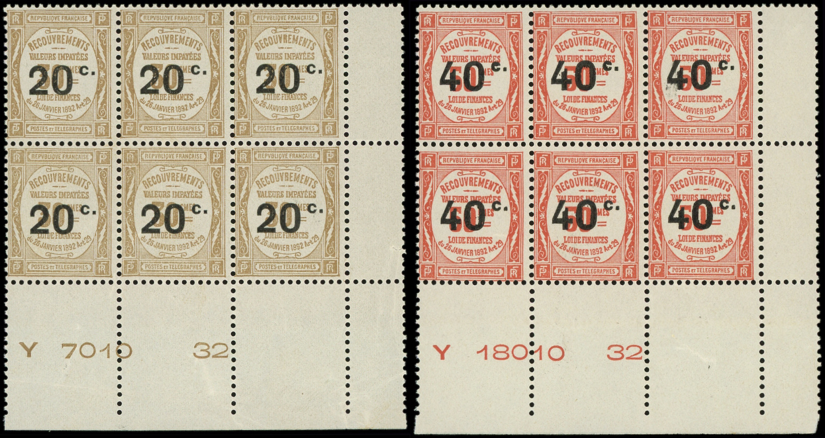 Recouvrements surchargés, BLOCS de 6 cdf avec N°, TB (Image)