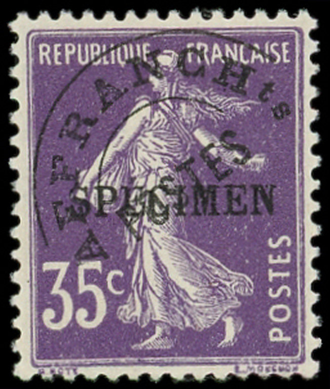 Semeuse Camée, 35c. violet surchargé SPECIMEN, TB (Image)