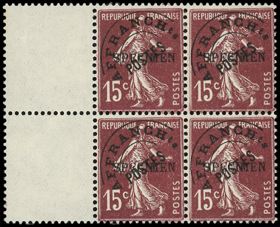 Semeuse Camée, 15c. brun, surch. SPECIMEN, BLOC de 4, TB (Image)
