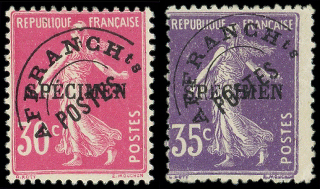 62-CI 2 Semeuse Camée, 30c. et 35c. surch. SPECIMEN, TB (Image)