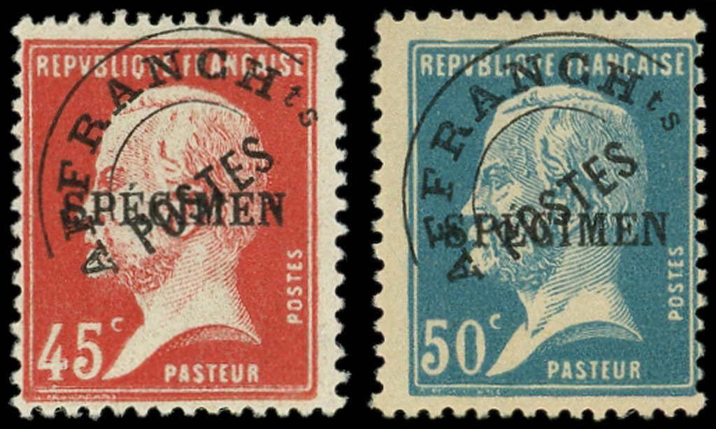 68-CI 1, Pasteur, 45c. rouge et 50c. bleu, surch. SPECIMEN, TB (Image)