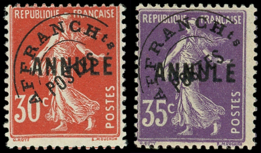 Merson, 45c. vert et bleu, surch. ANNULE 2 fois, TB (Image)