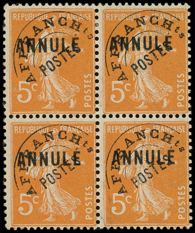 Semeuse Camée, 5c. orange surch. ANNULE, BLOC de 4, PAIRE sup. *, TB (Image)