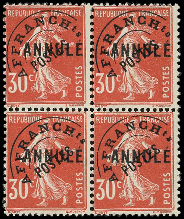 Semeuse Camée, 30c. rouge, surch. ANNULE, BLOC de 4, TB (Image)
