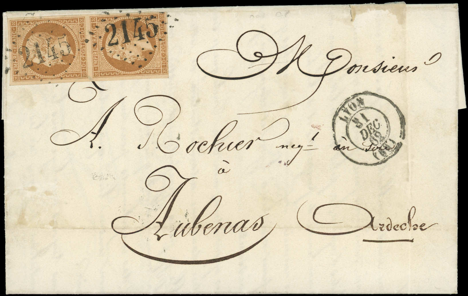 brun, T II, PAIRE obl. GC 2145 s. LAC, càd LYON 31/12/62, date précoce du GC, TTB (Image)