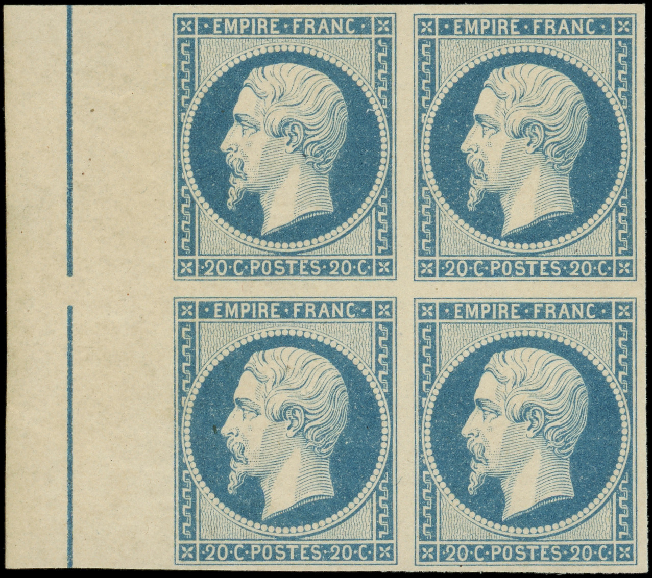II, BLOC de 4, ch. sur le bdf et infime sur la paire sup., grande fraîcheur, TTB (Image)