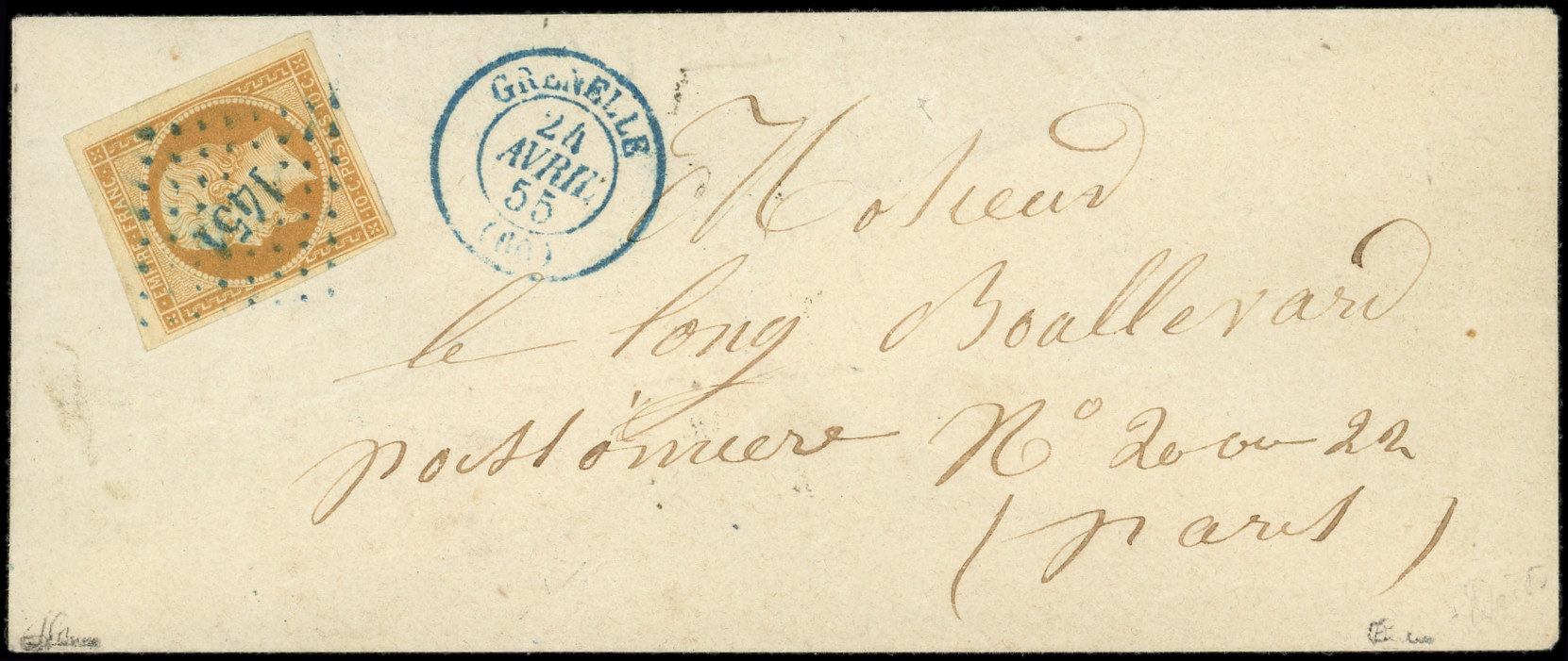 clair, T II, obl. PC 1451 s. Env., càd T15 GRENELLE 24/4/55, le tout en BLEU, Superbe (Image)