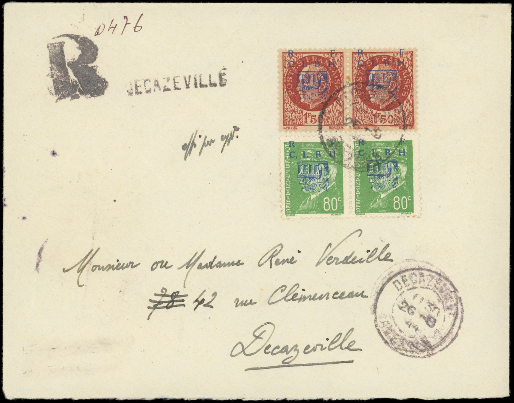 NON EMIS, T II et N°6 1f50 brun-rouge T II, les 2 en PAIRES obl. DECAZEVILLE 26/8/44 s. Env. Rec. locale, TB (Image) (Image2)