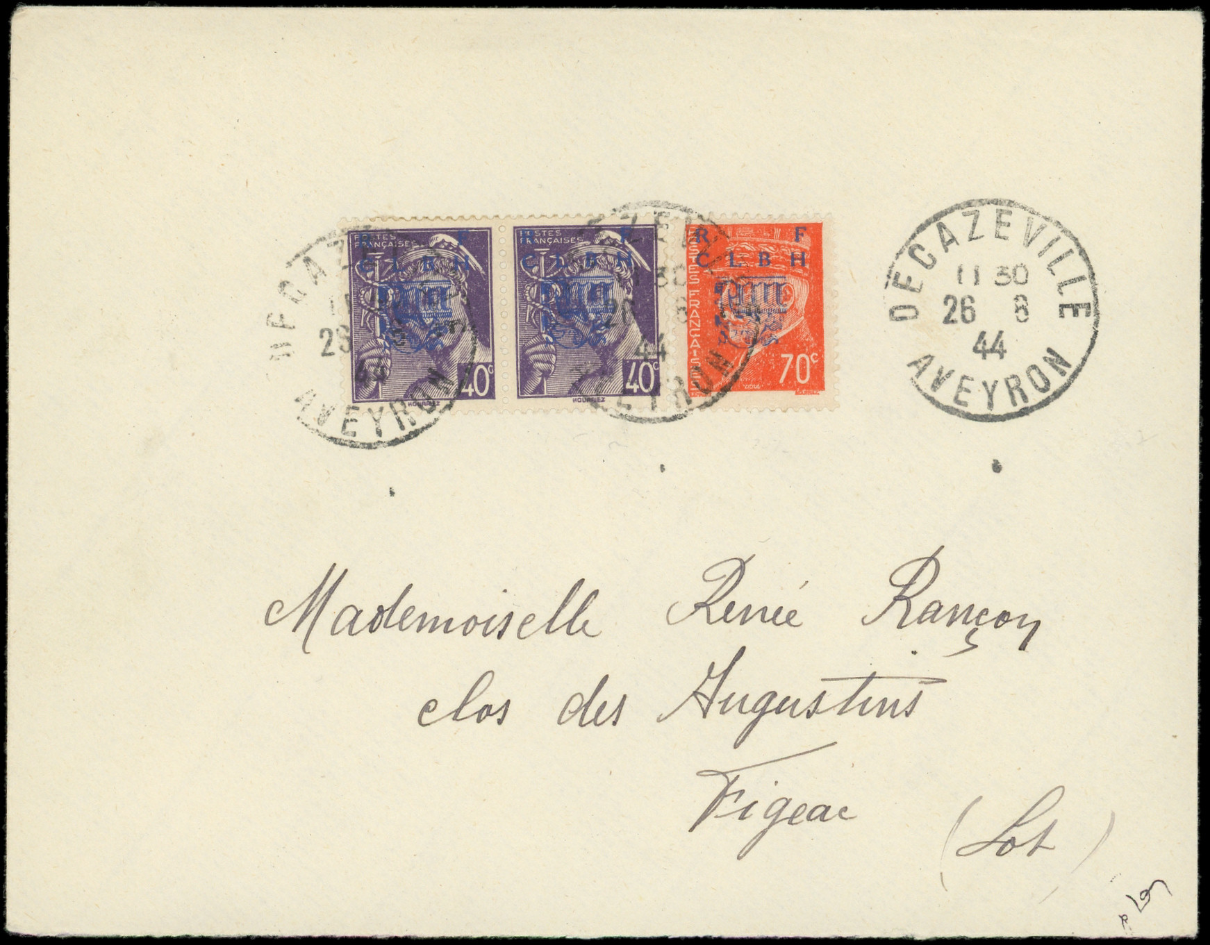 NON EMIS, PAIRE et N°3 70c. orange, tous T I obl. DECAZEVILLE 26/8/44 s. Env., TB, signée Mayer (Image)