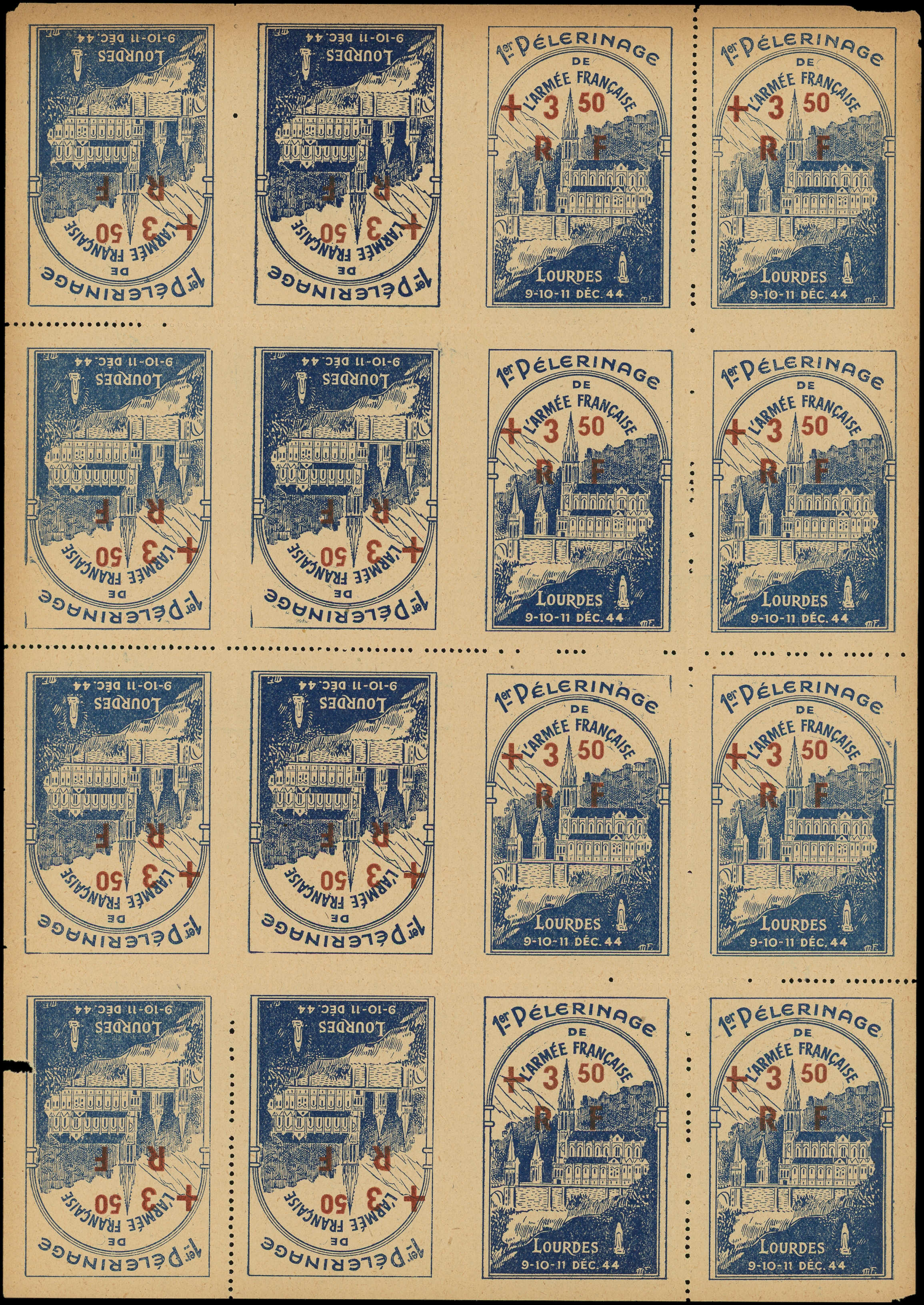 Pélerinage surch., feuille de 16 vignettes avec 4 TETES BECHES, TB (Image)