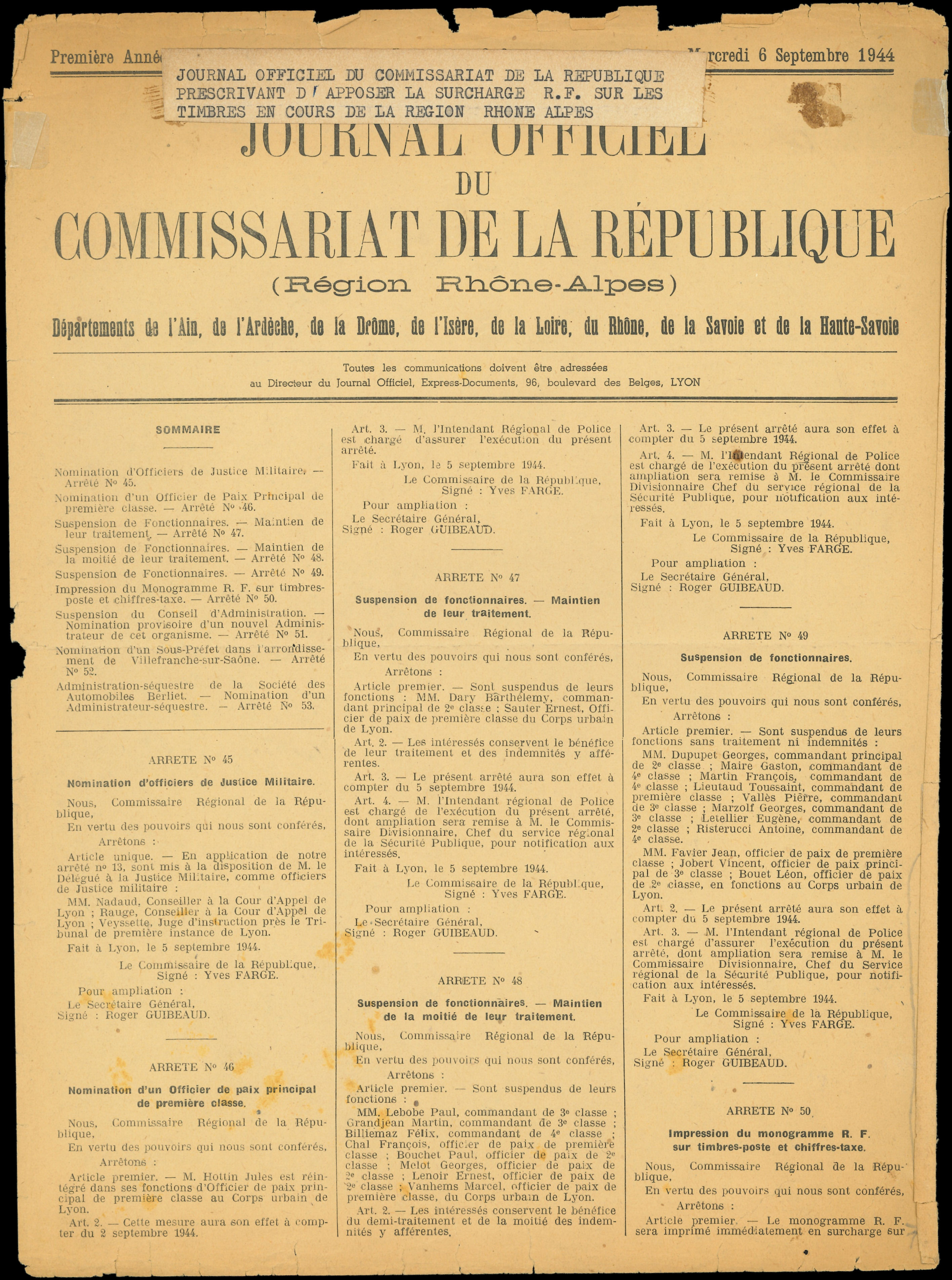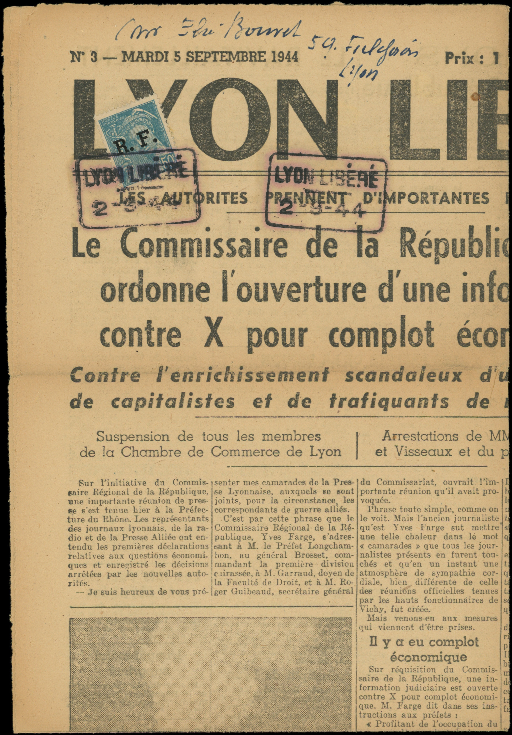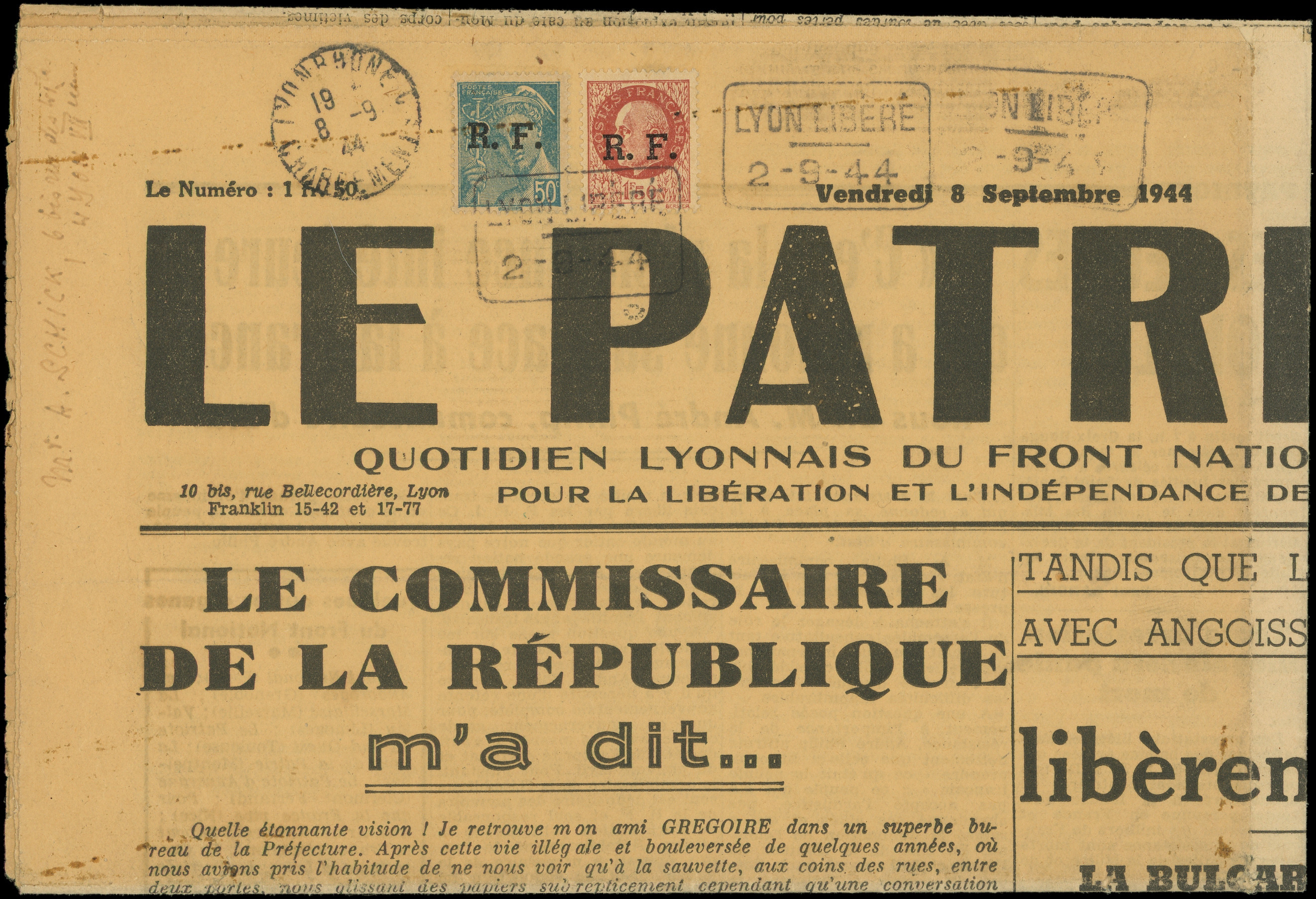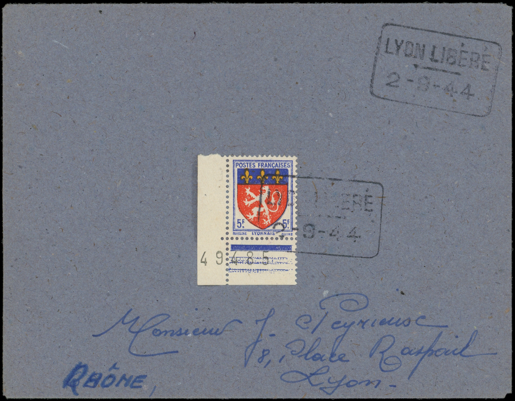 Lyonnais cdf obl. LYON LIBERE/2-9-44 s. Env., TB (Image)