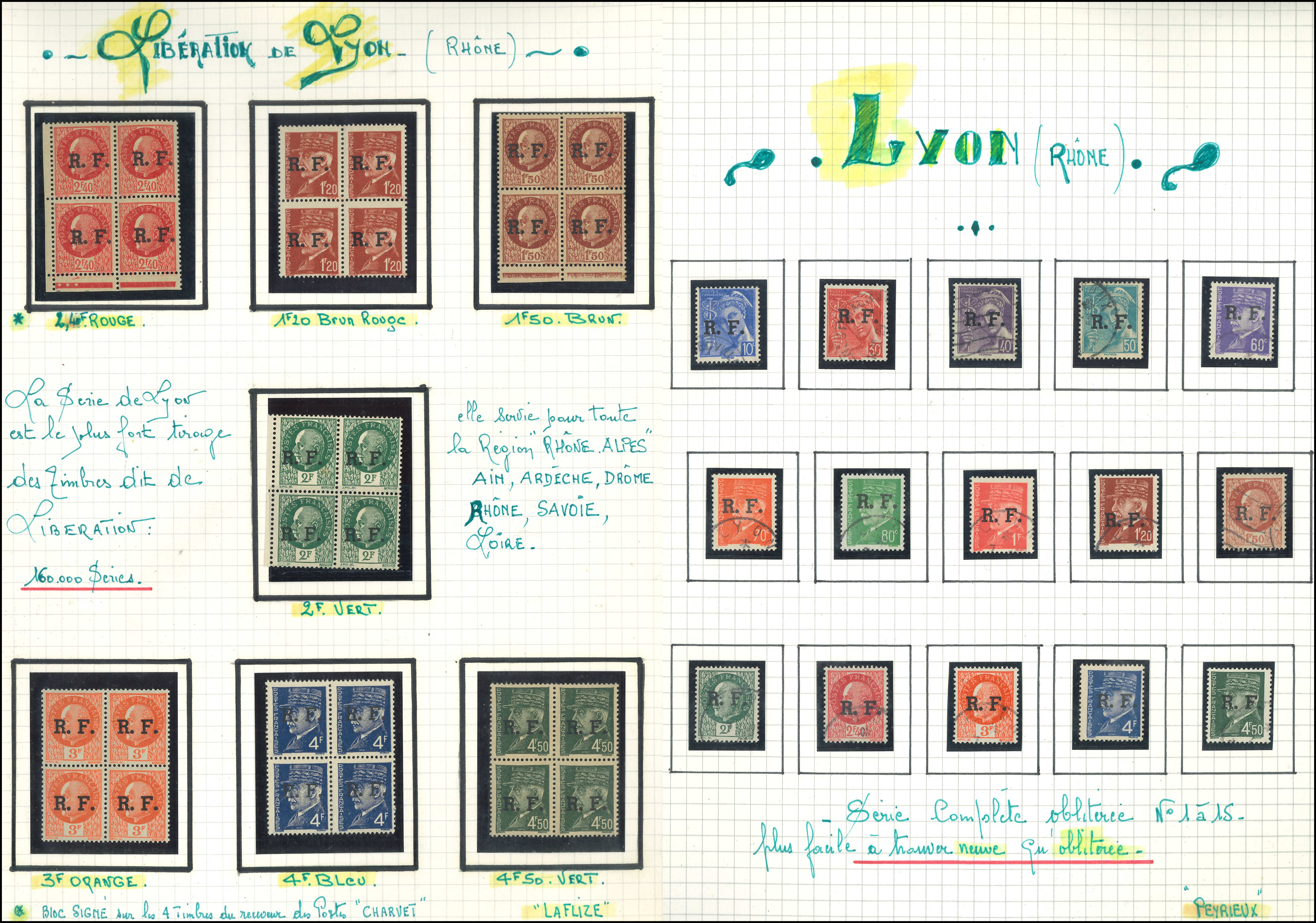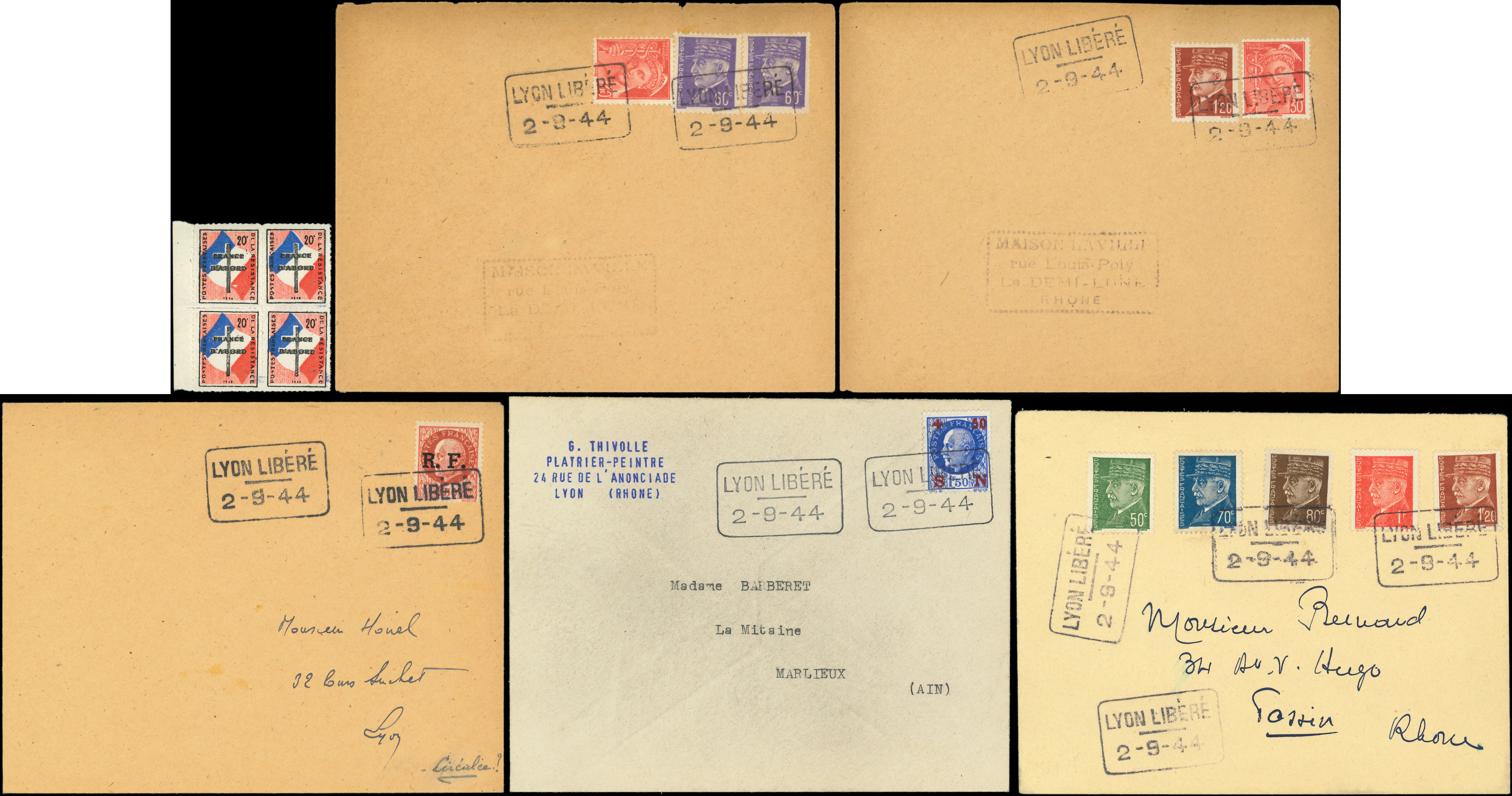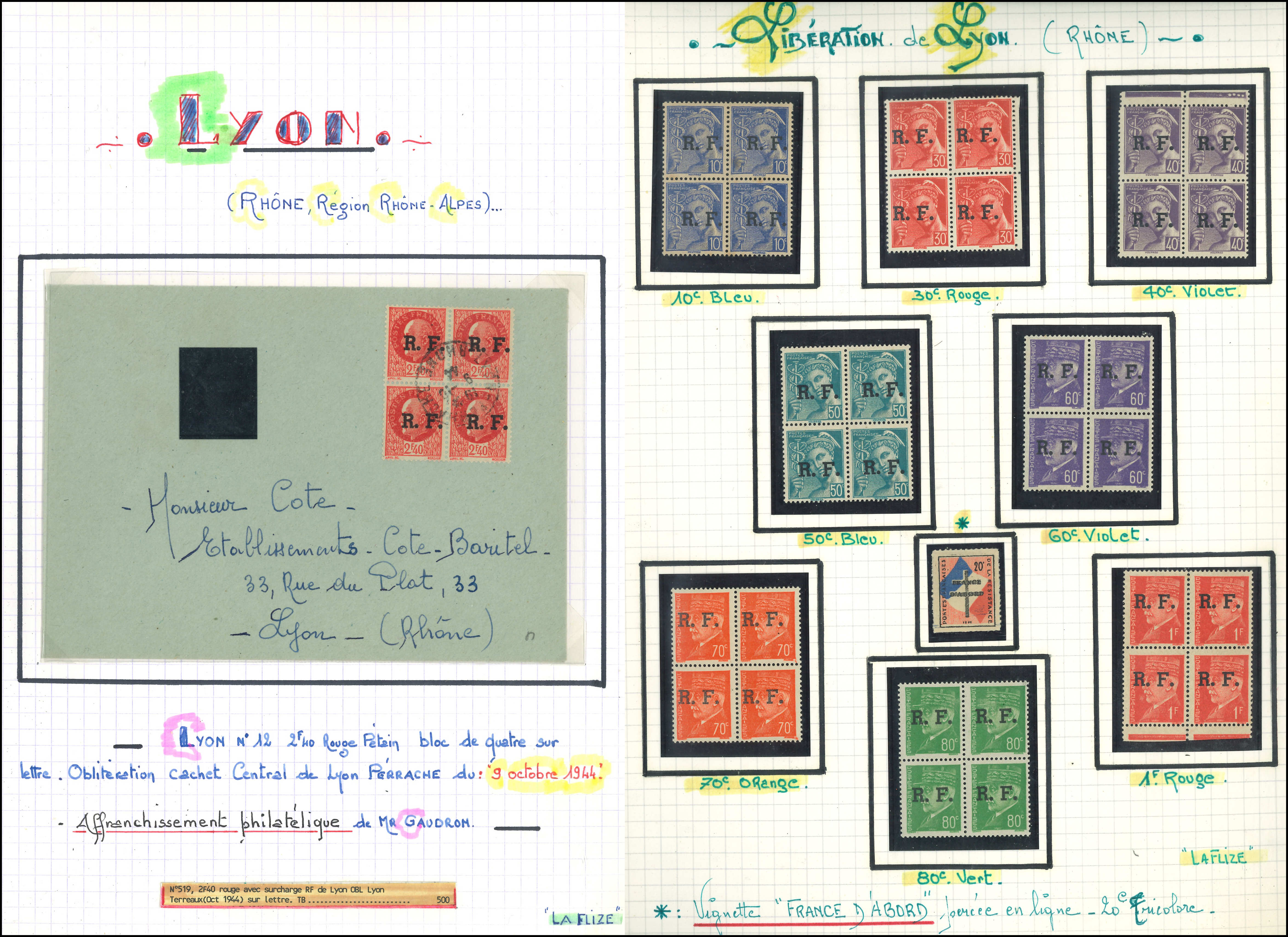 divers obl. LYON LIBERE 2/9/44 + N°1 Bloc de 4, TB (Image)