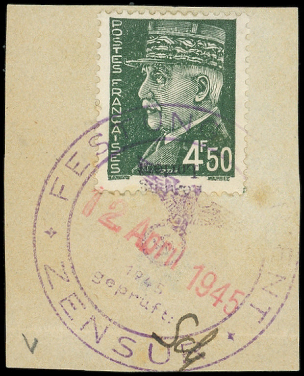 gravé, DOUBLE surcharge NOIRE et ROUGE, obl. s. fragt, RR, TB (Image)