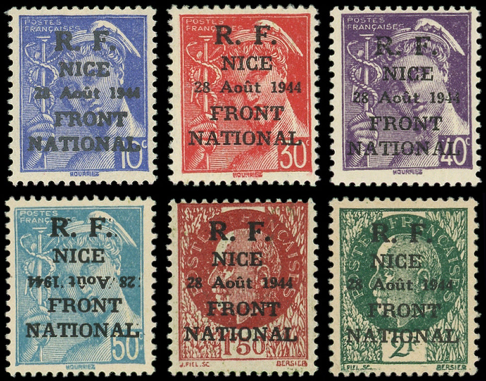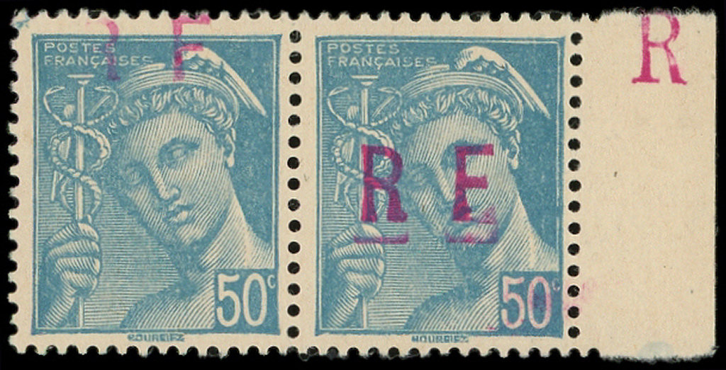 rouge, BANDE de 5, surch. maigre RENVERSEE, obl. PARIS/Bd ST MARTIN 1/10/46 s. Env., TB, signée Mayer (Image)