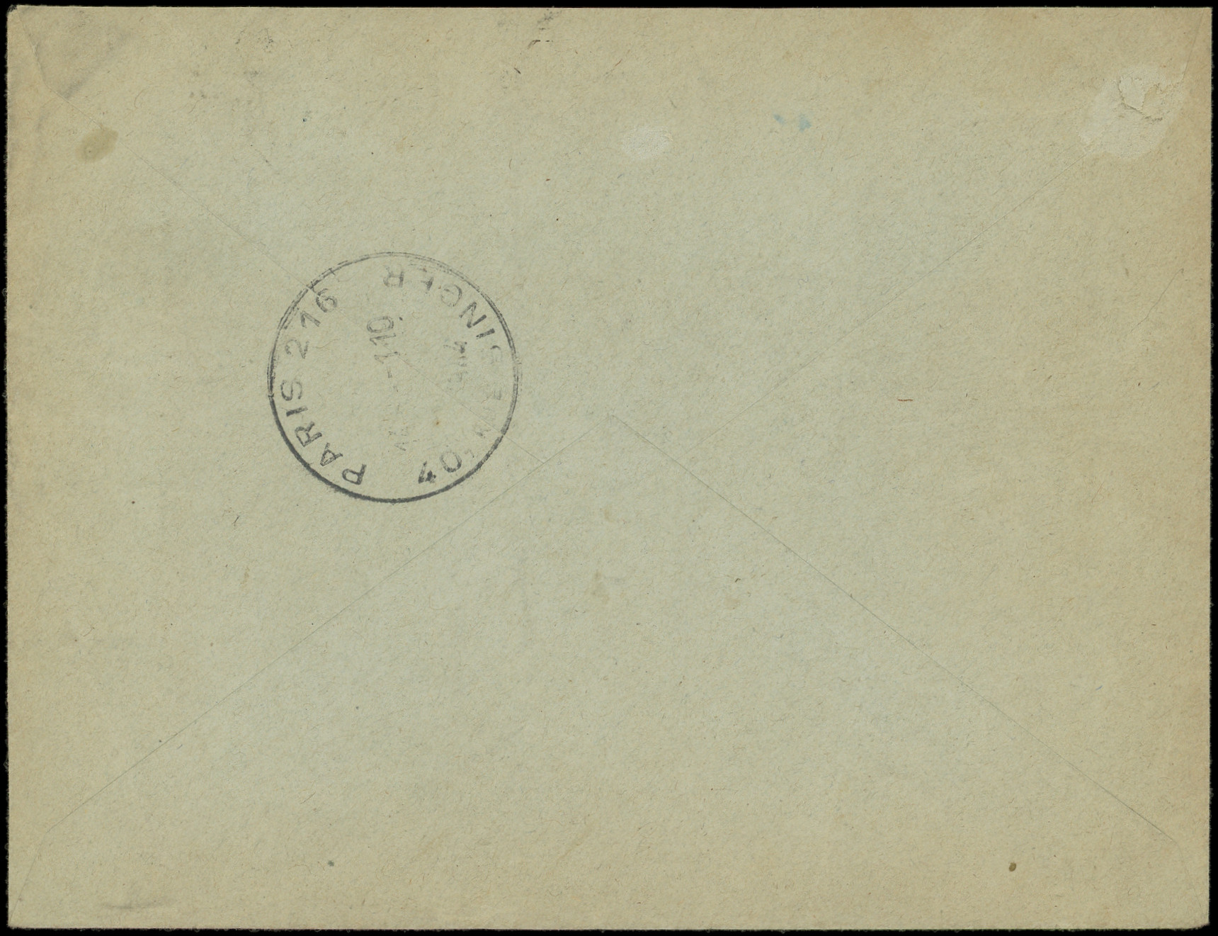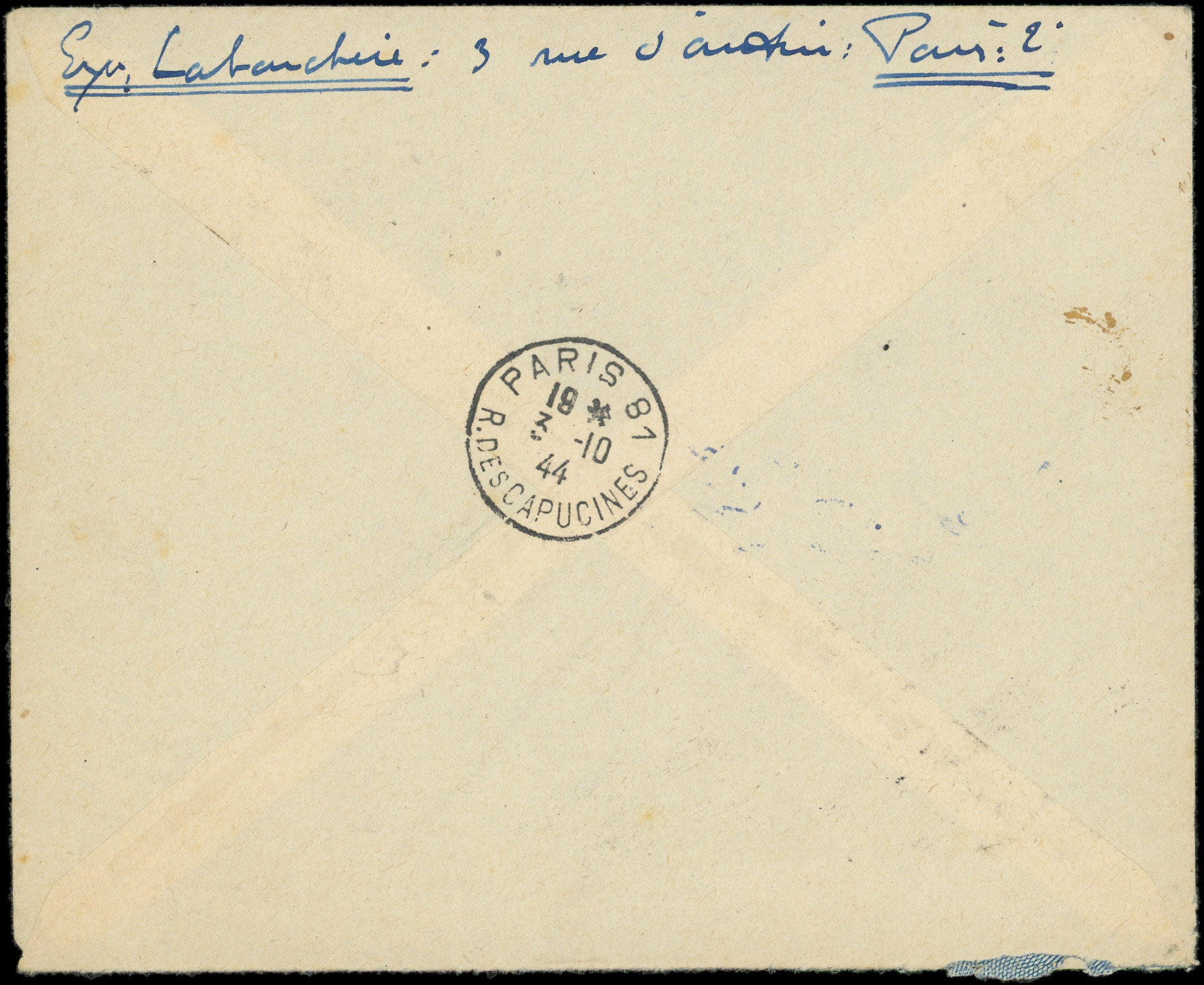 obl. PARIS XIV 1/10/44 s. Env. pneu, arr. PARIS 216, TB (Image) (Image2)