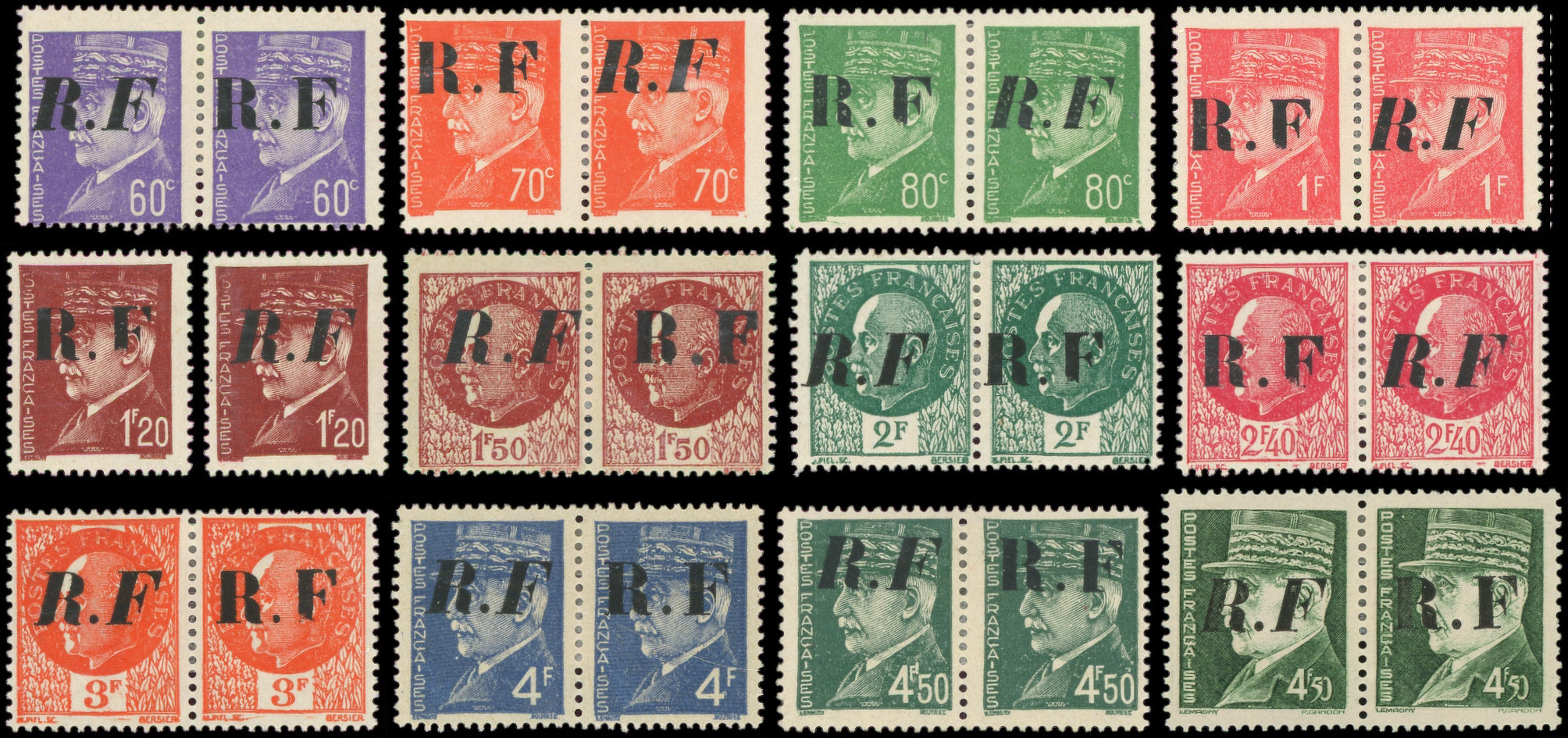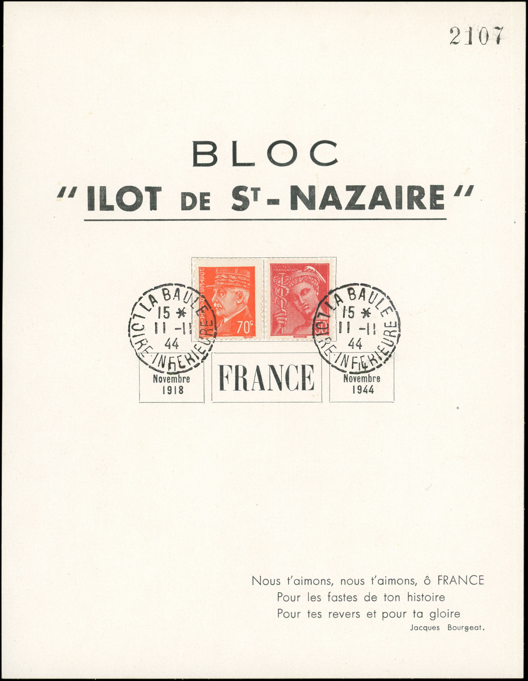 Pétain et 30c. rouge Mercure obl. 11/11/45 s. grand bloc, TB (Image)