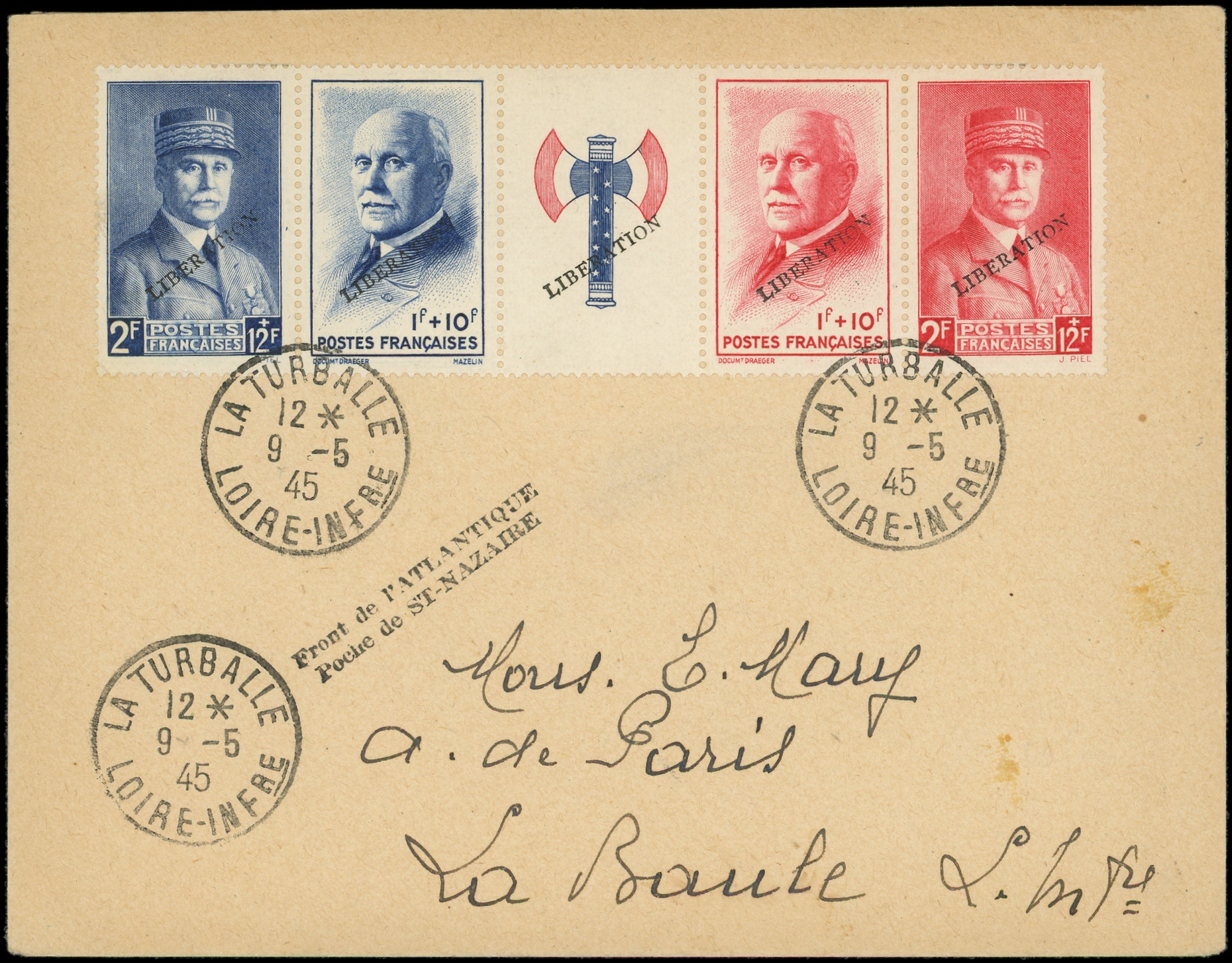 Francisque surch. LIBERATION obl. LA TURBALLE 9/5/45 s. Env., TB (Image)