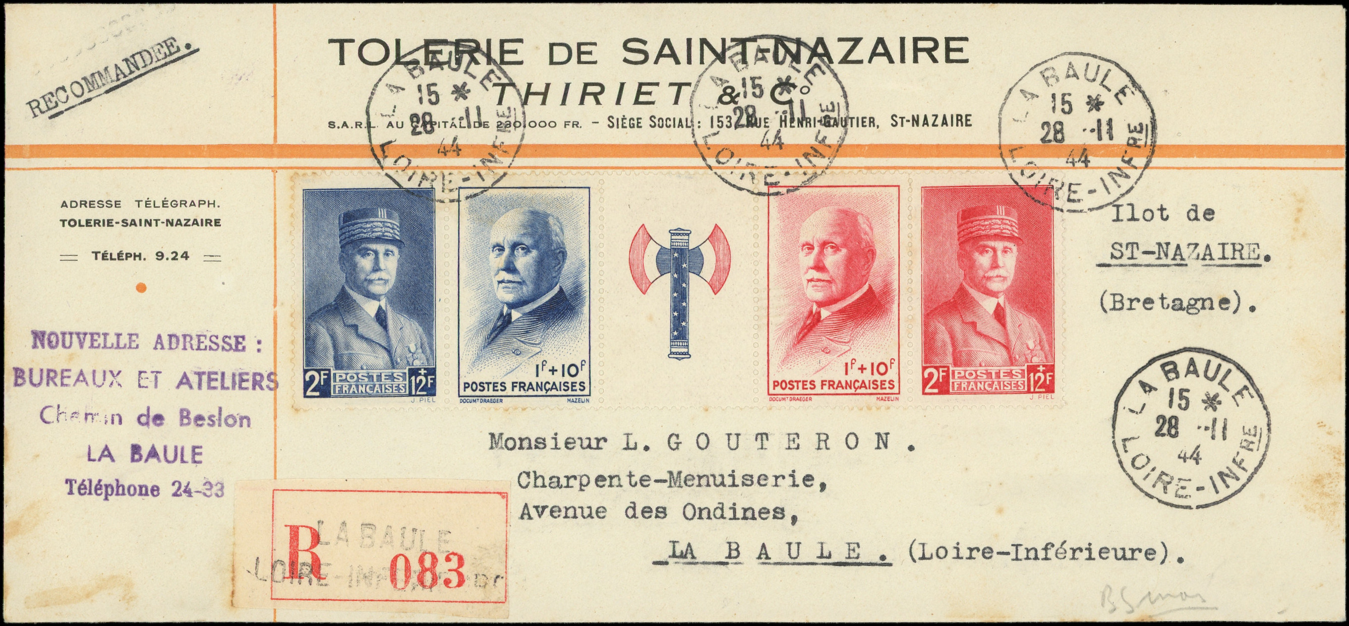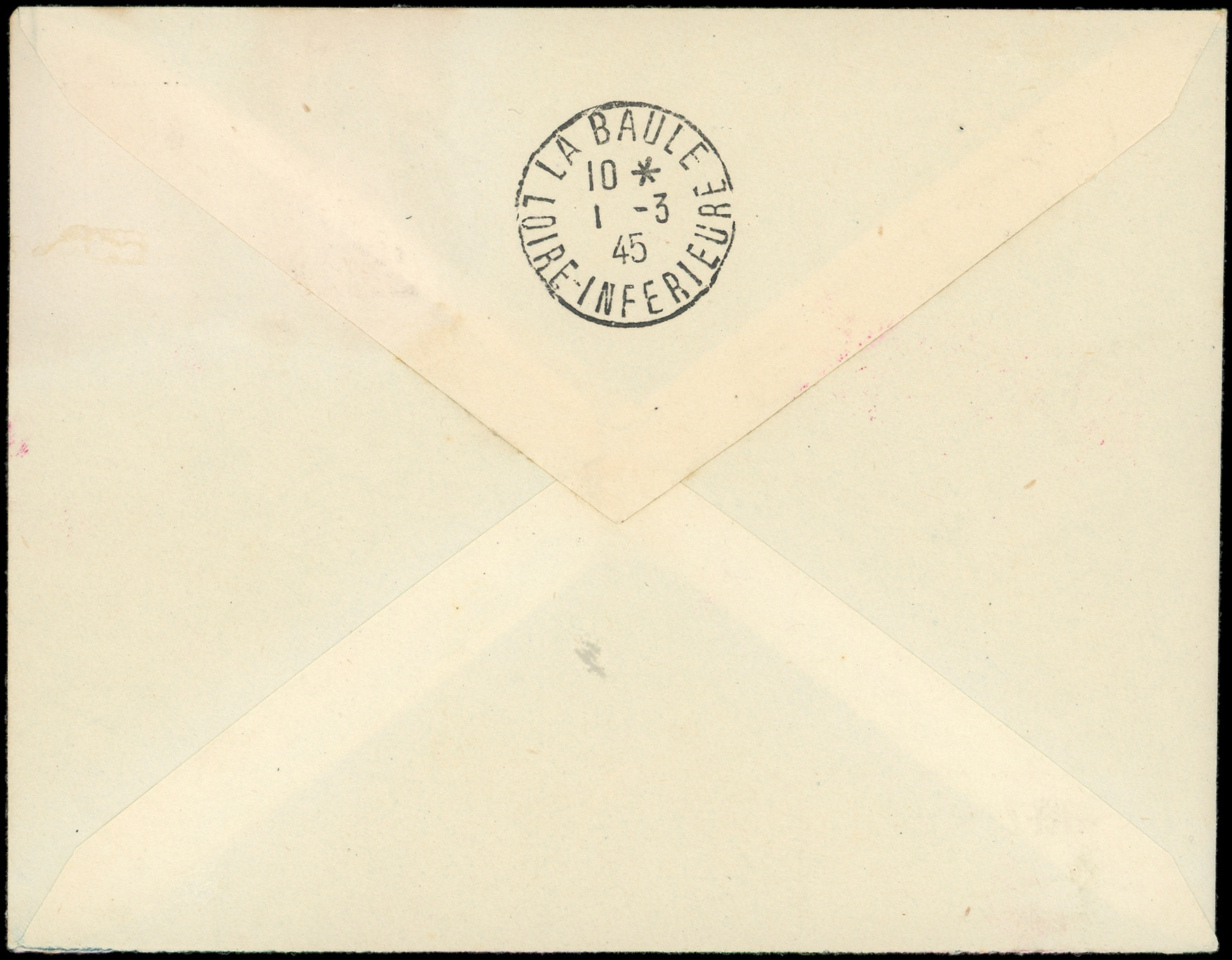 Francisque obl. LA BAULE 28/11/44 s. Env. Rec. locale, arr. 29/11, TB (Image)