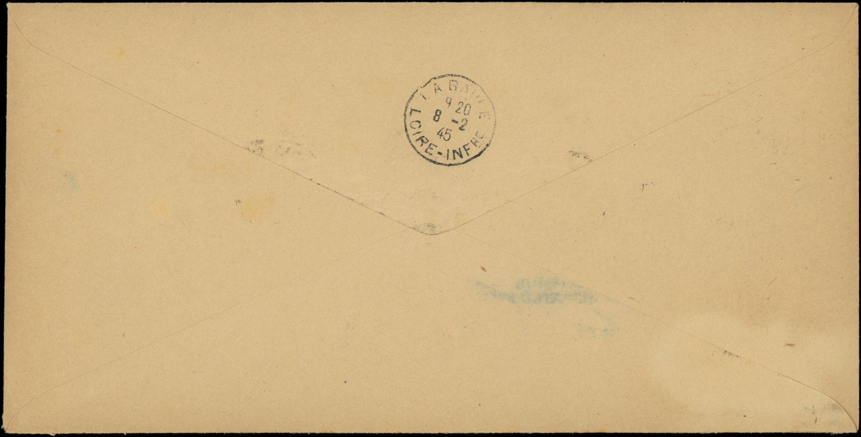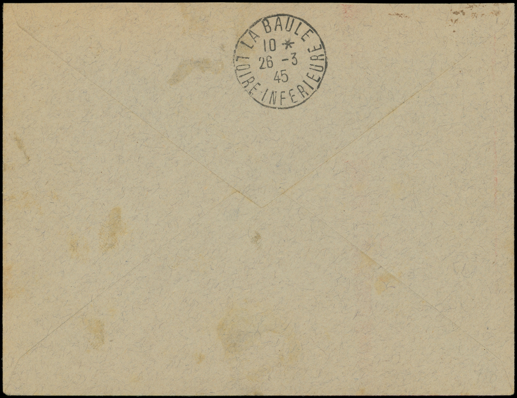 saumon, NON DENTELE, obl. BATZ S/MER 28/2/45 s. Env. Rec., arr. LA BAULE 1/3, TB (Image)