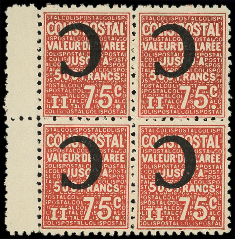 rouge, surch. RENVERSEE, BLOC de 4, TB, Yvert N°112 (Image)