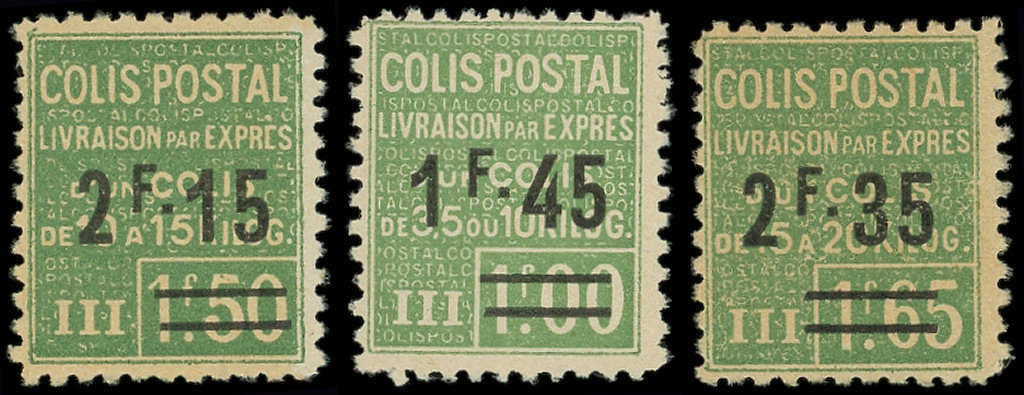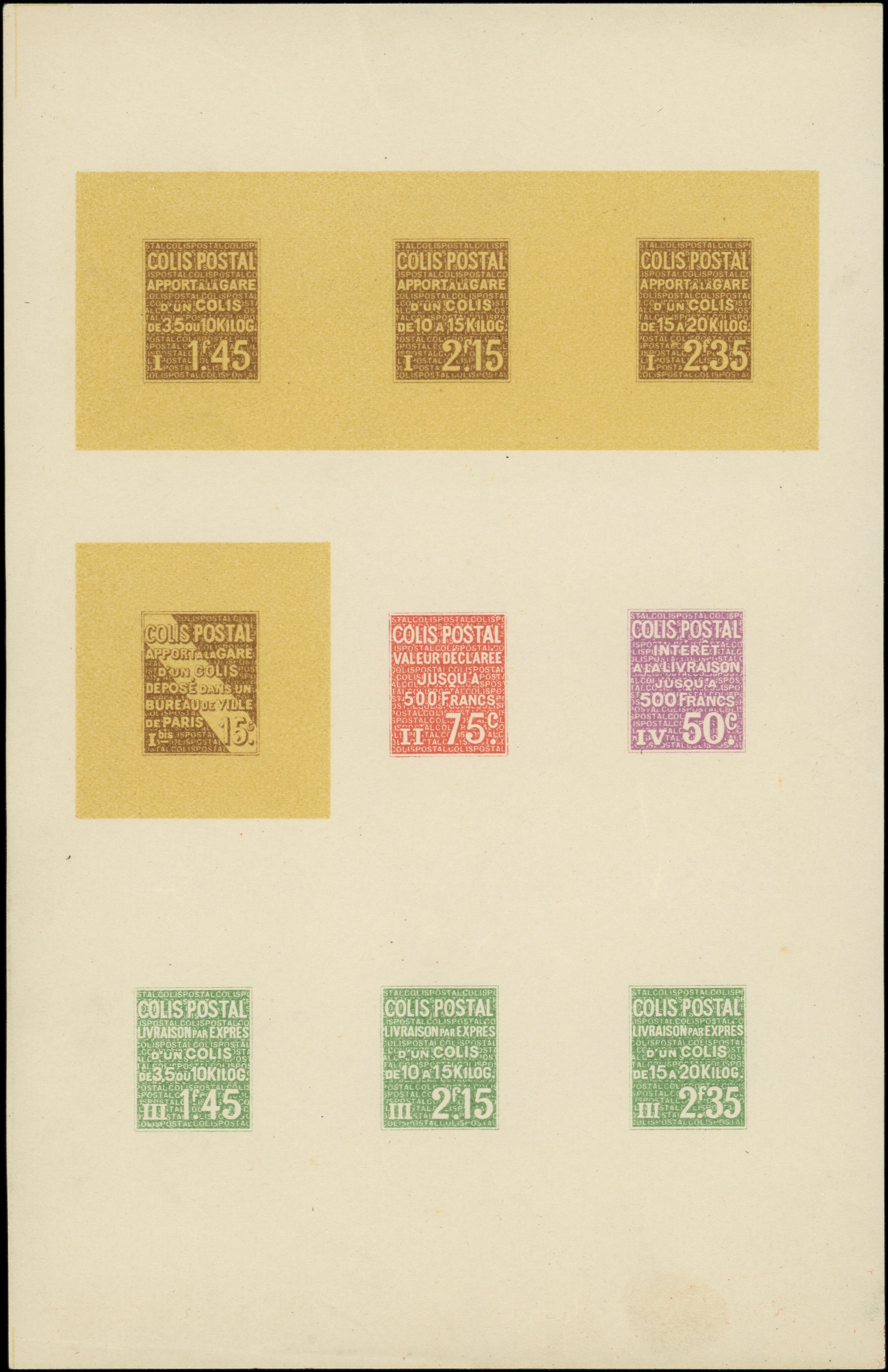 valeurs dont les 2f15 brun s. jaune, 2f15 et 2f35 verts NON EMIS, épreuve COLLECTIVE, jamais rencontrée, Superbe, certif. Calves (Image)