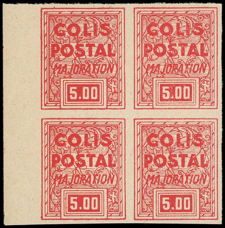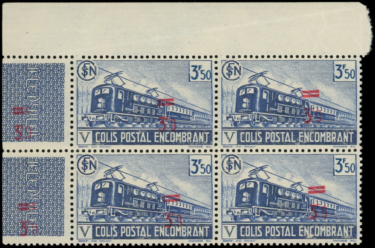 bleu, surcharge très DEPLACEE, BLOC de 4 cdf, 2 surcharges sur un bord, Yvert N°207, TB (Image)