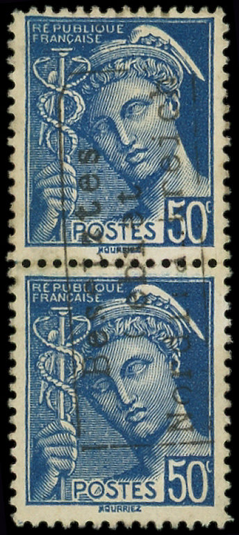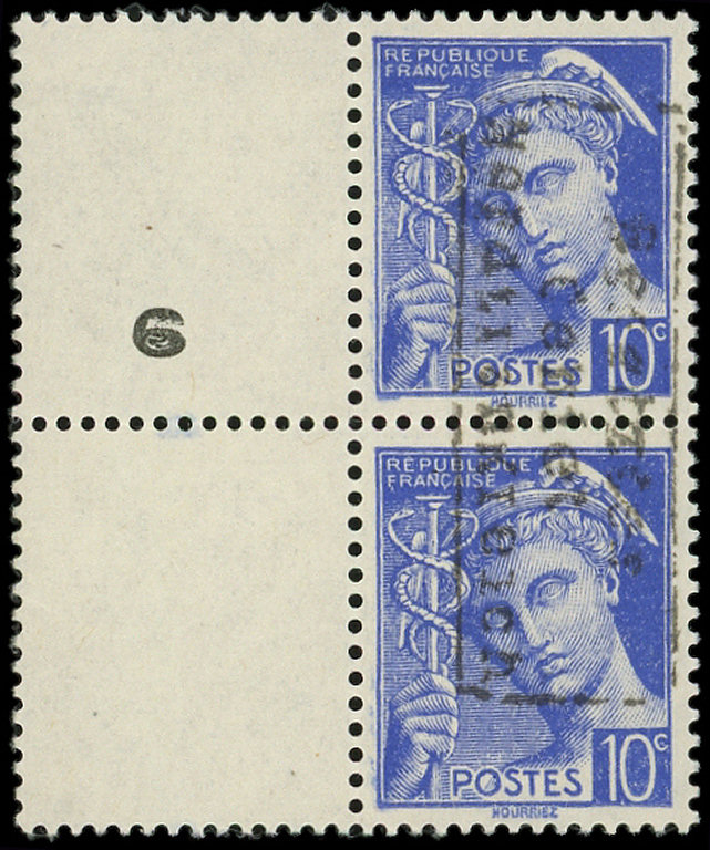 Mercure 10c. outremer, PAIRE verticale bdf, TB, Maury N°29 (Image)
