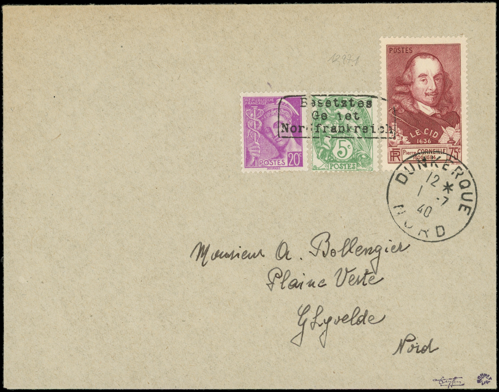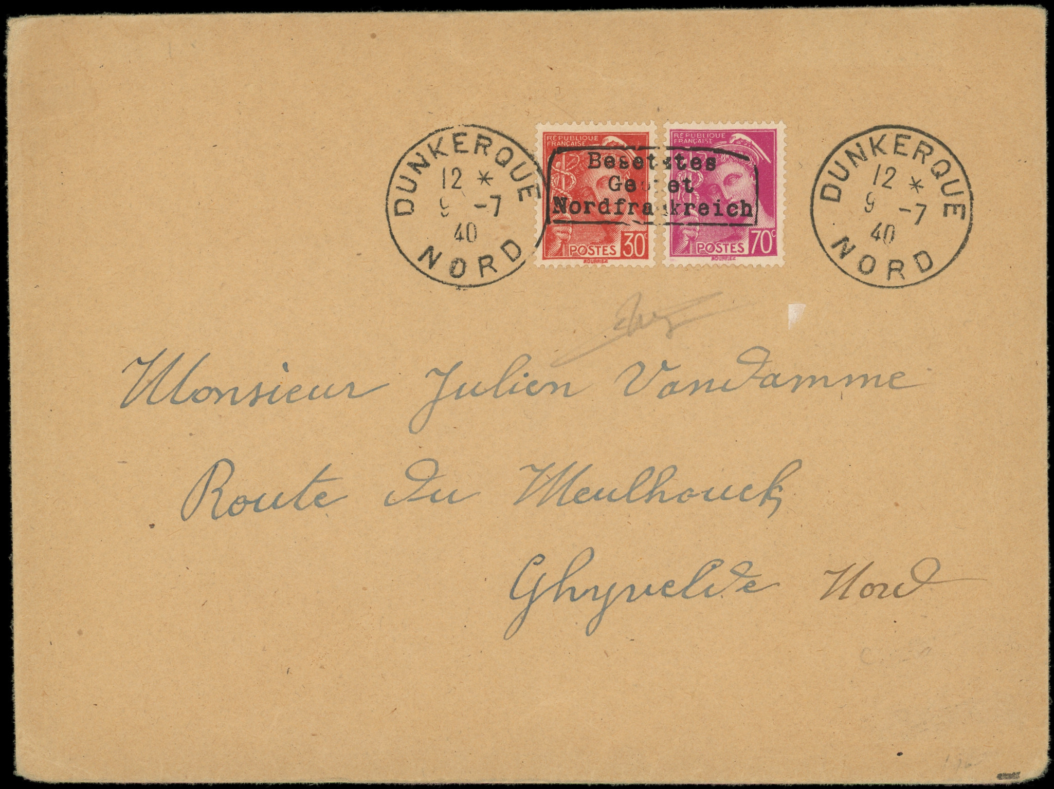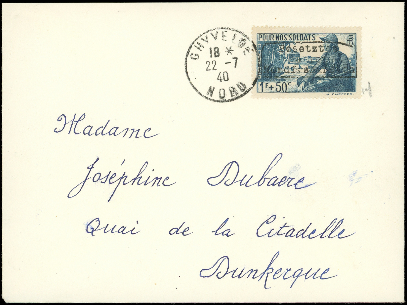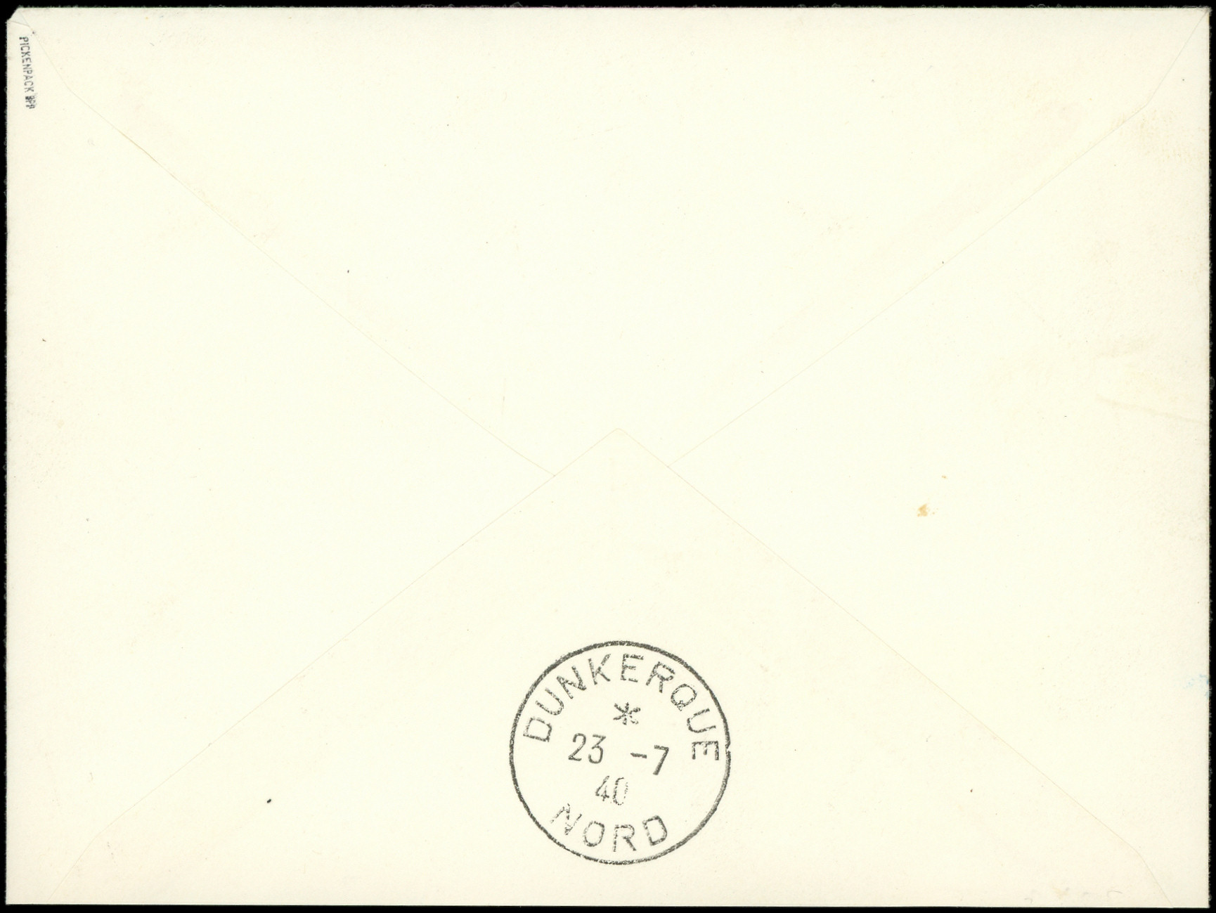 et 410 obl. DUNKERQUE 1/7/40 s. Env., arr. GHYVELDE 2/7, TB (Image) (Image2)