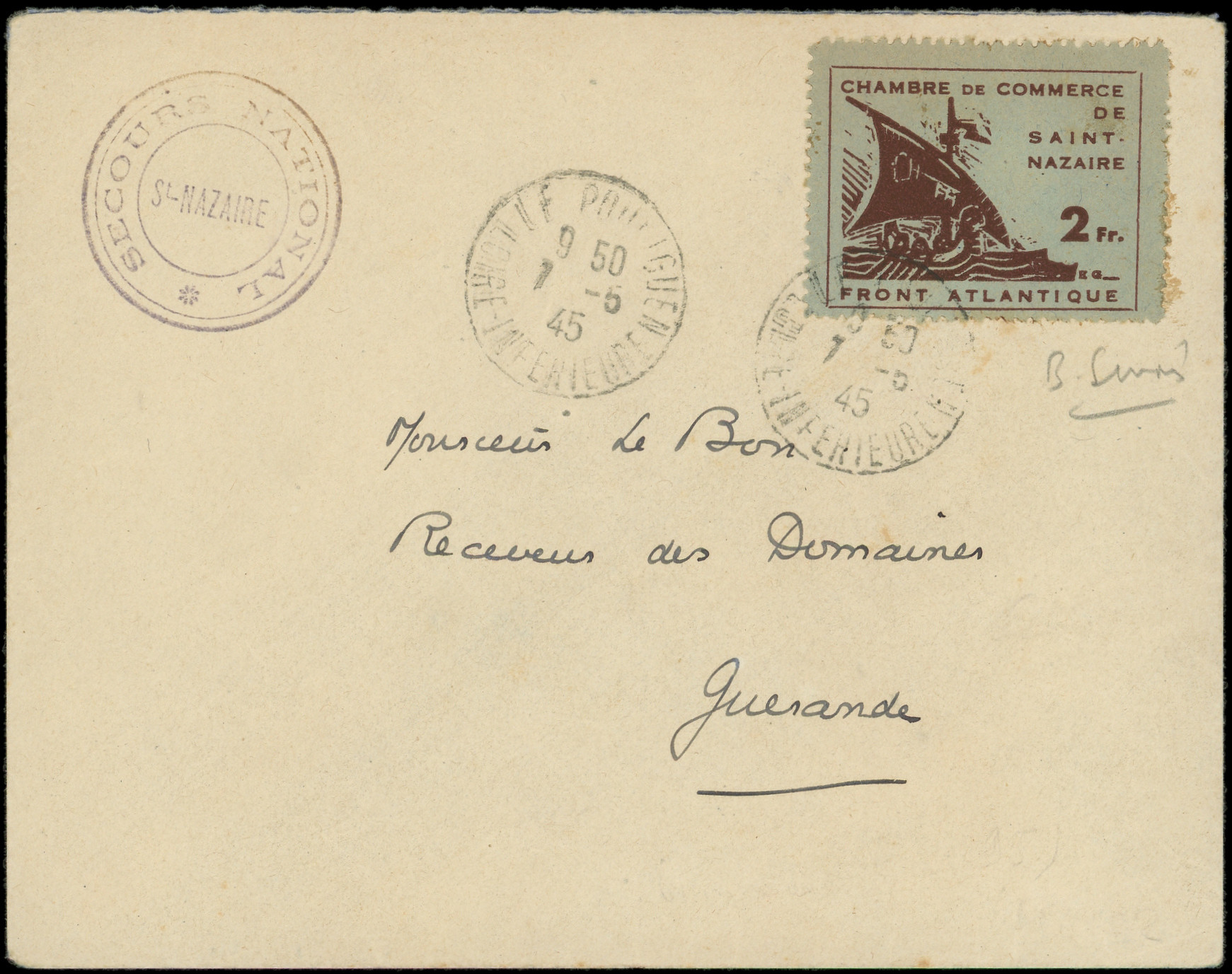LE POULIGUEN 7/5/45 s. Env., cachet Secours National, arr. (Guérande) 9/5, TB (Image)